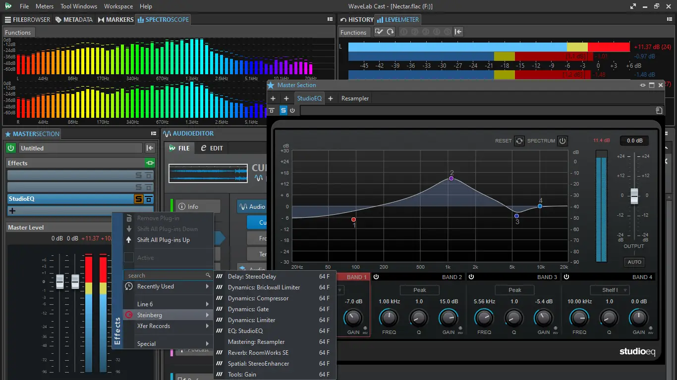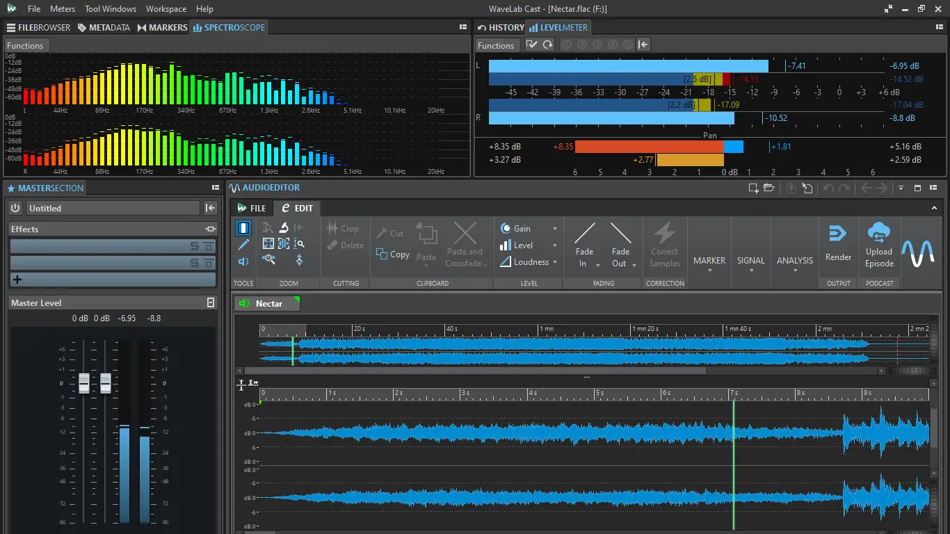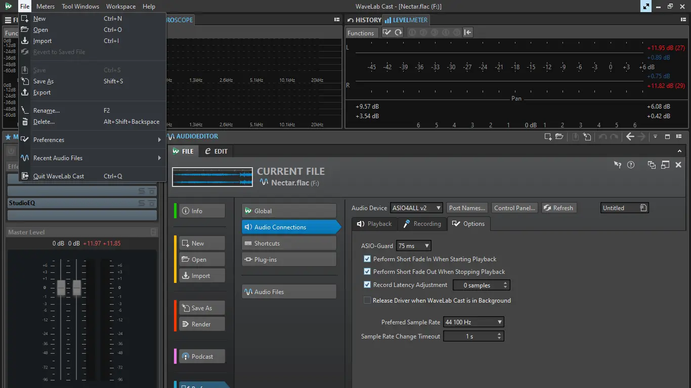 Пользоваться WaveLab Cast можно даже при отсутствии опыта в звукорежиссуре. После импорта аудио или видеофайла программа автоматически создает дорожки и предлагает инструменты для улучшения звука. Редактирование осуществляется перетаскиванием фрагментов, с возможностью настройки привязки и автоматического выравнивания. Встроенный модуль Inspector предоставляет доступ к эквалайзеру, компрессору, де-эйзеру и другим процессорам. Режим реального времени позволяет сразу слышать изменения. Для публикации подкастов используется встроенный менеджер RSS и FTP-загрузчик, что ускоряет процесс распространения контента.