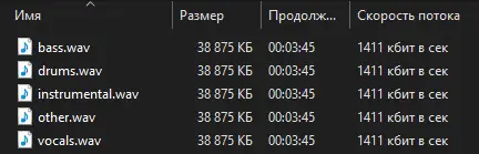 - Автоматически создаёт файл instrumental.wav, содержащий полную инструментальную версию без вокала.