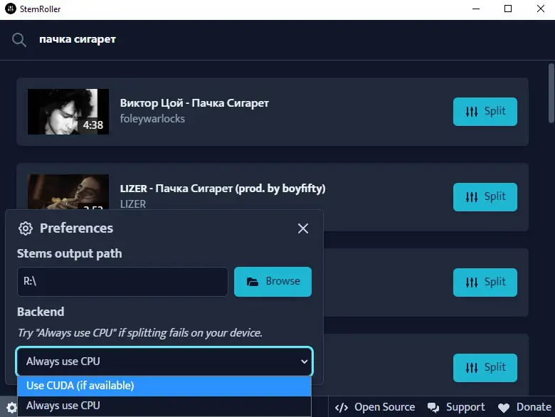 StemRoller — бесплатный аудиоредактор с открытым исходным кодом, позволяющий разделять музыкальные треки на отдельные компоненты: вокал, ударные, бас и инструментальную часть. Программа основана на технологиях искусственного интеллекта и подходит для создания караоке и изучения аранжировки песен.