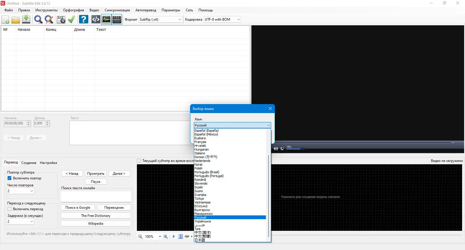 Работа с Subtitle Edit