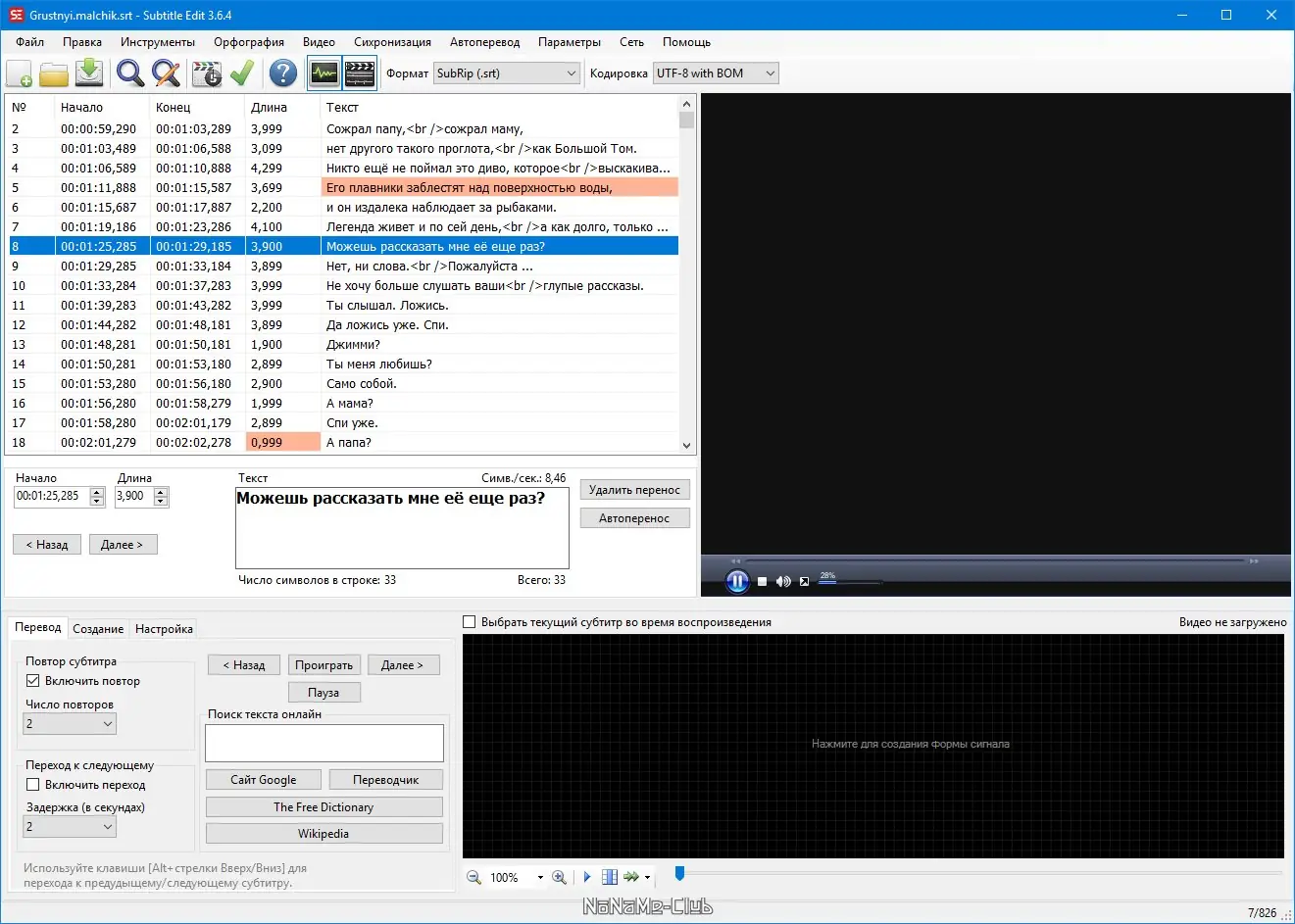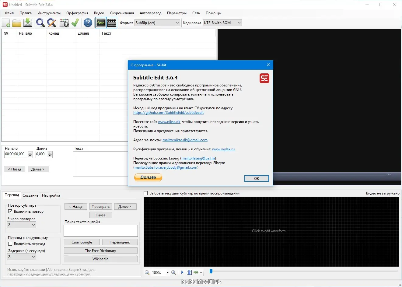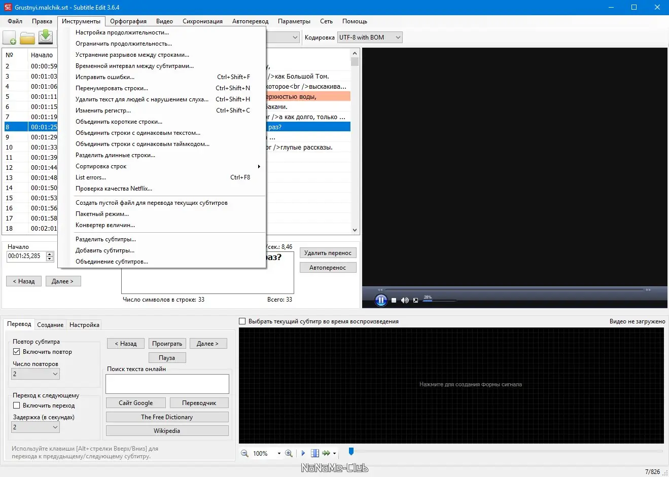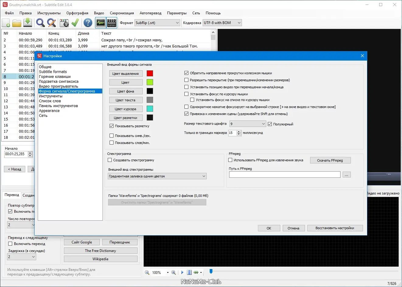 Работа с Subtitle Edit