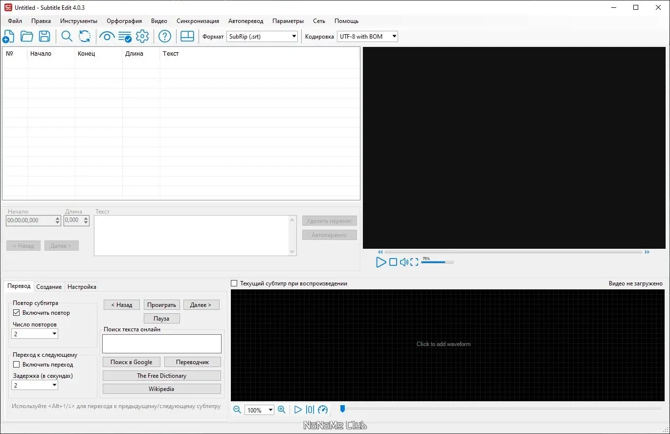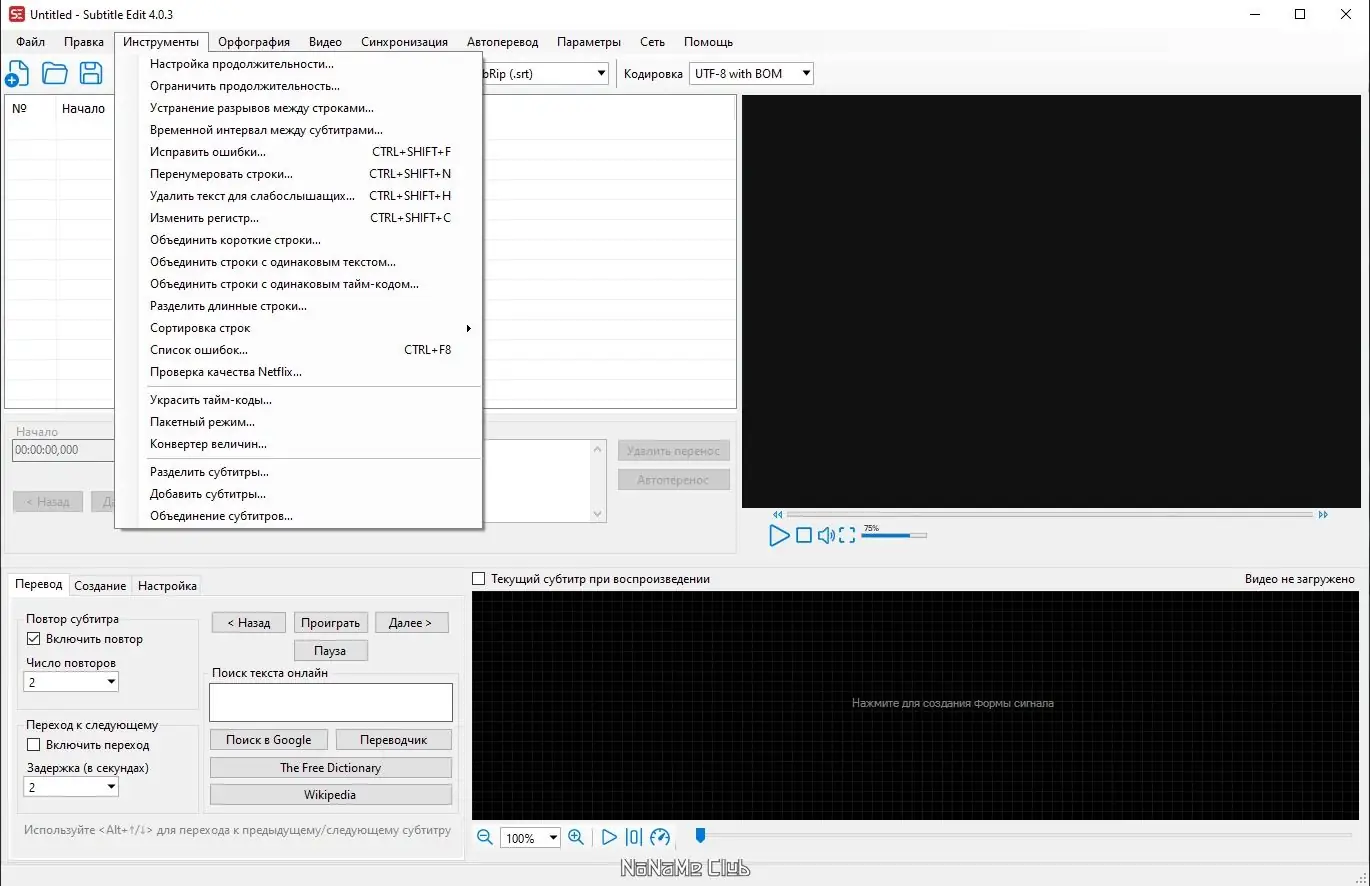 Работа с Subtitle Edit