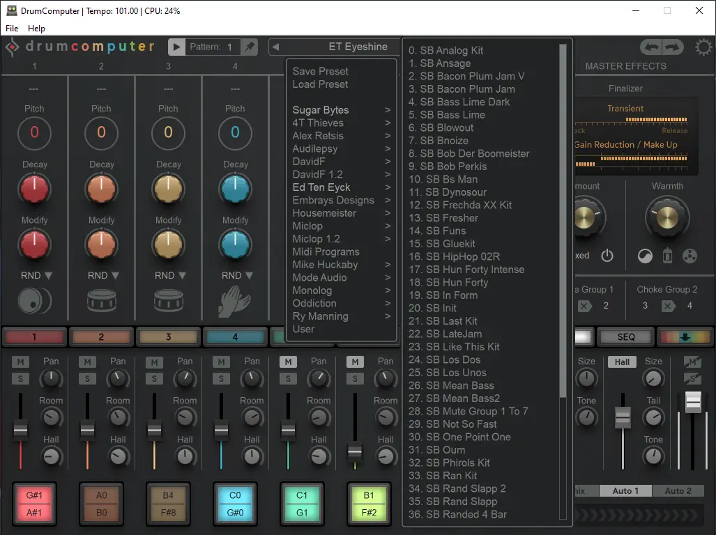 - Наличие эффектов, рандомизаторов и расширенного секвенсора делает программу автономной системой для генерации ритмов без необходимости подключения дополнительных плагинов.