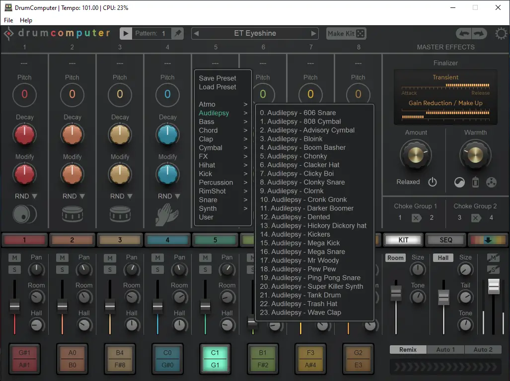 DrumComputer объединяет мощь синтеза и гибкость секвенирования, позволяя создавать уникальные ударные партии, которые невозможно получить с помощью обычных сэмплеров.