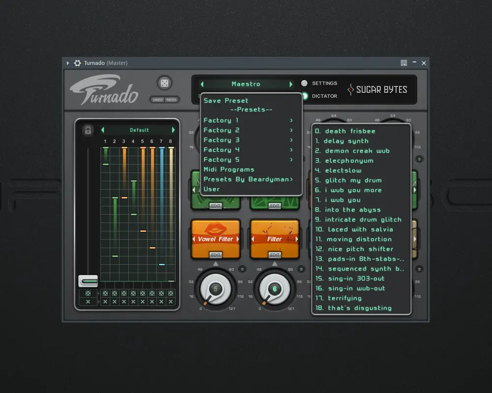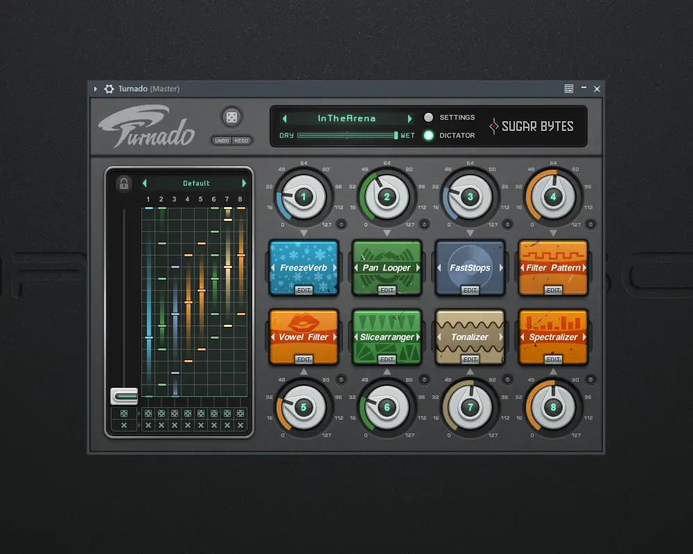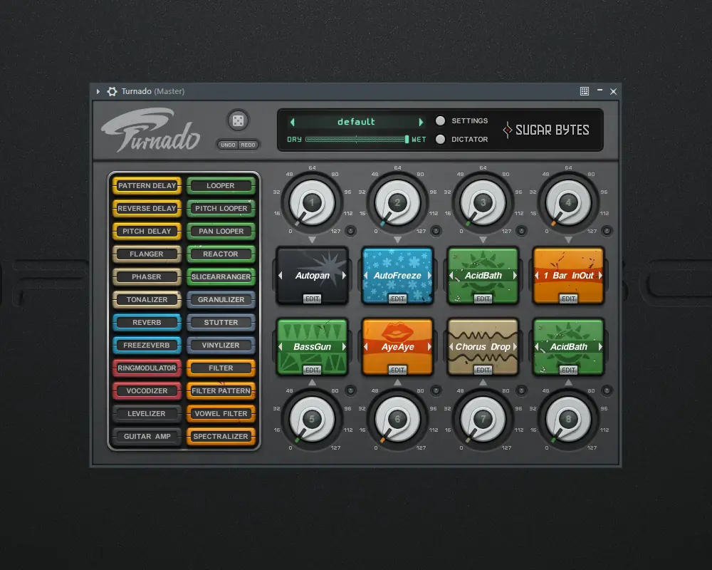 Turnado — это мощный аудио-манипулятор, разработанный компанией Sugar Bytes для творческой обработки звука в реальном времени. Программа сочетает 24 эффекта, распределённых по 8 слотам, и предлагает уникальные способы управления, включая динамическую маршрутизацию сигнала и Dictator Mode. Идеально подходит как для студийной работы, так и для живых выступлений.