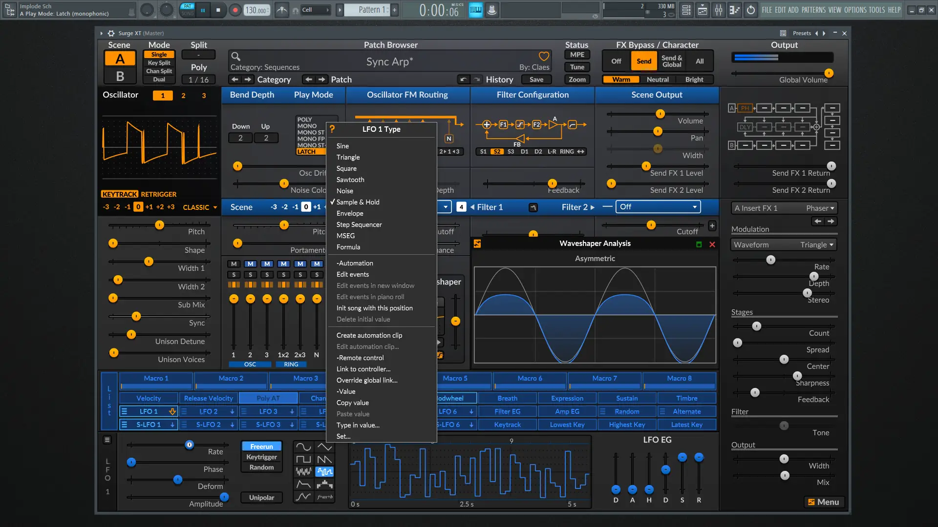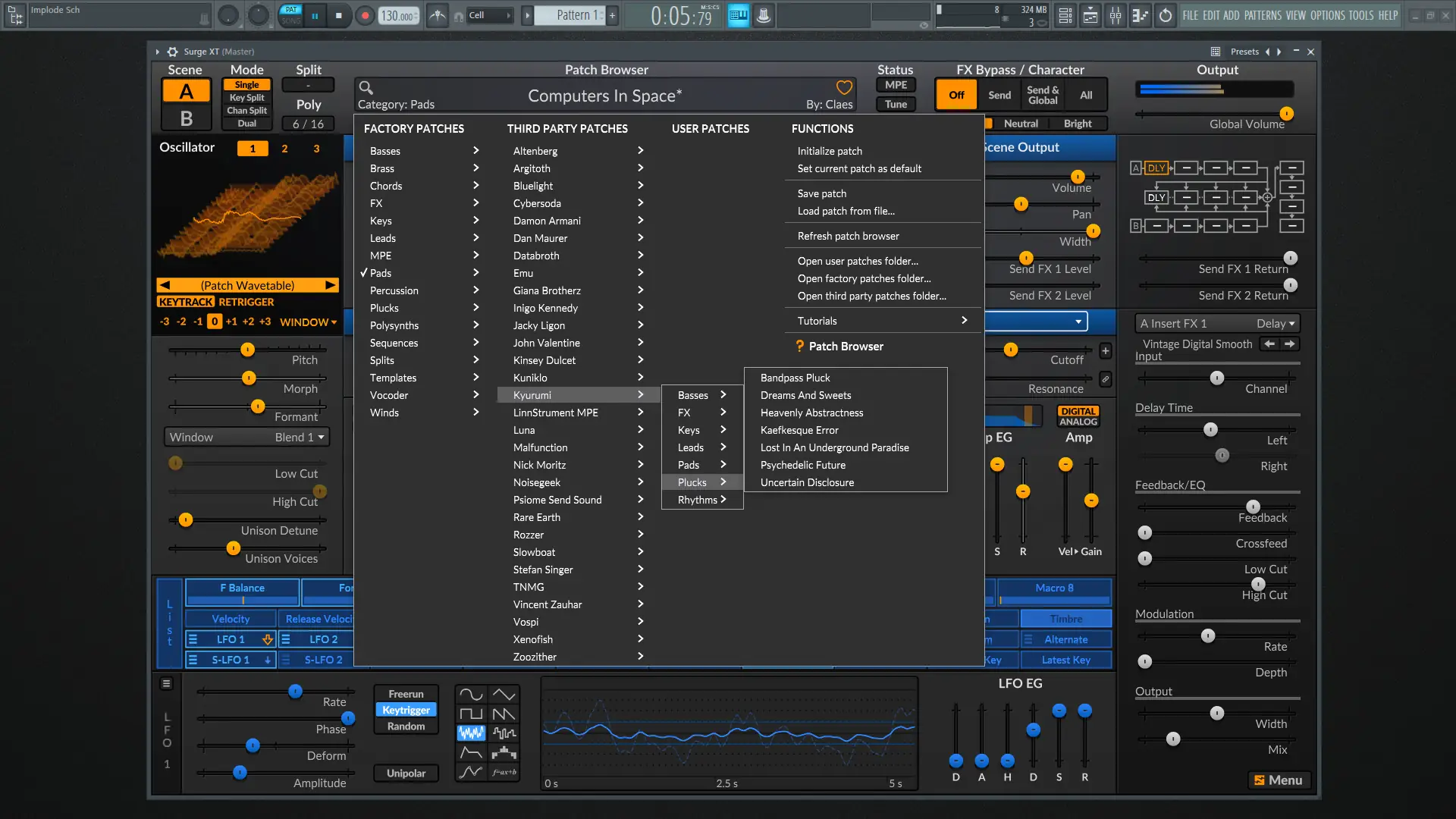 - Система модуляции включает 12 LFO, многосегментные огибающие и модуляторы на основе скриптов Lua.