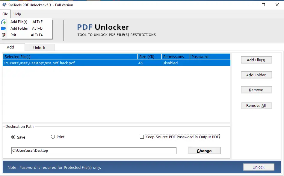 Описание SysTools PDF Unlocker