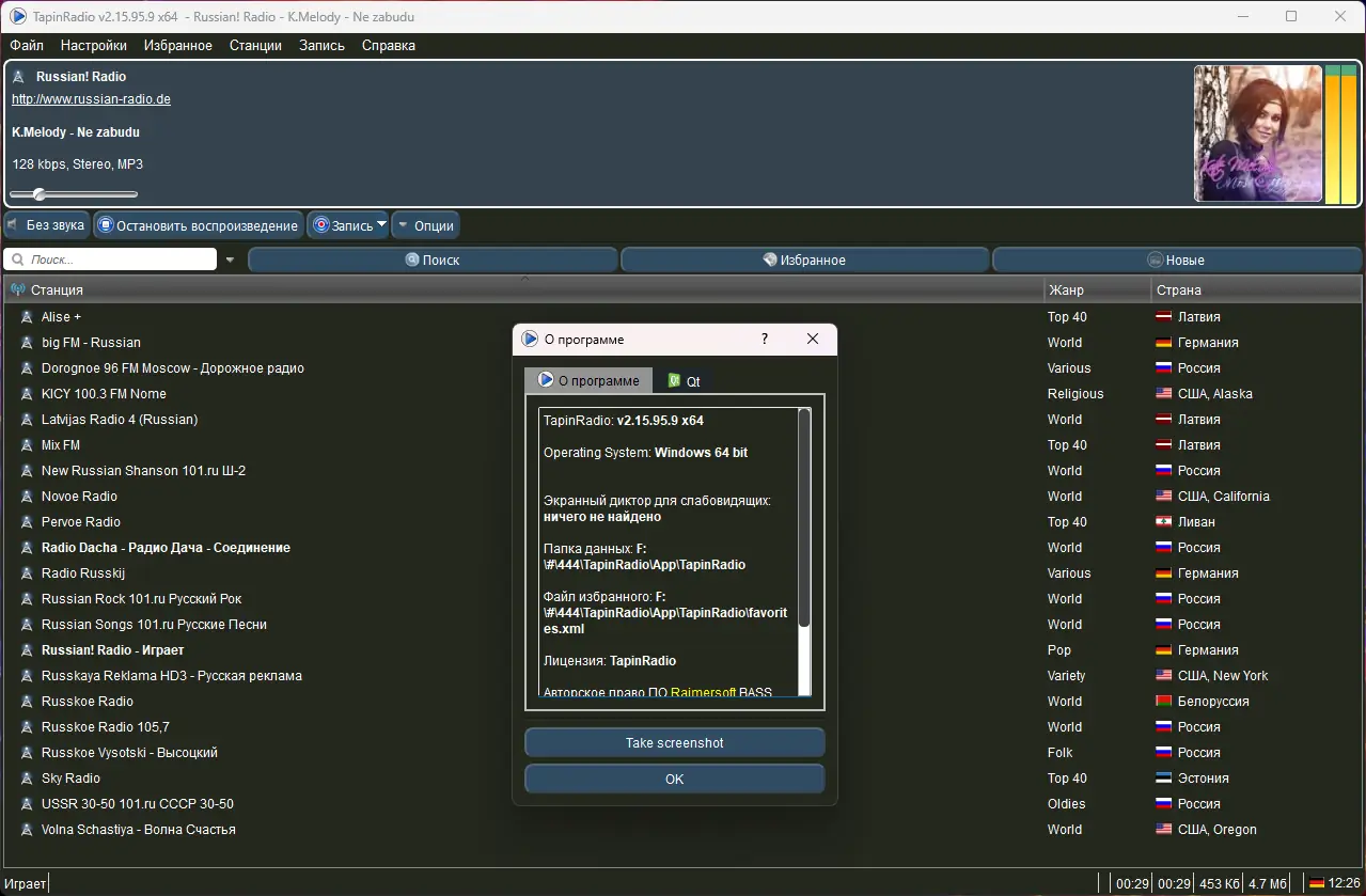 Работа с TapinRadio