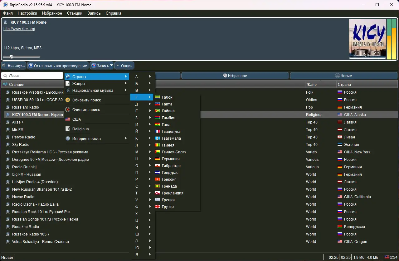 - Гибкая система категоризации — станции распределены по жанрам, странам и континентам.
