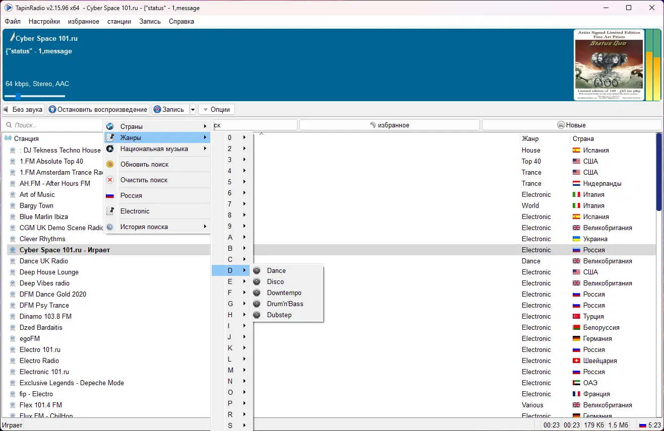 - Гибкая система организации станций — по жанрам, странам, континентам и пользовательским спискам.