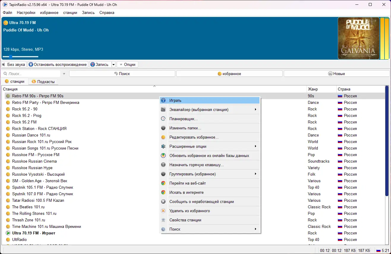 - Программа автоматически проверяет наличие обновлений и новых станций, поддерживая актуальность каталога.