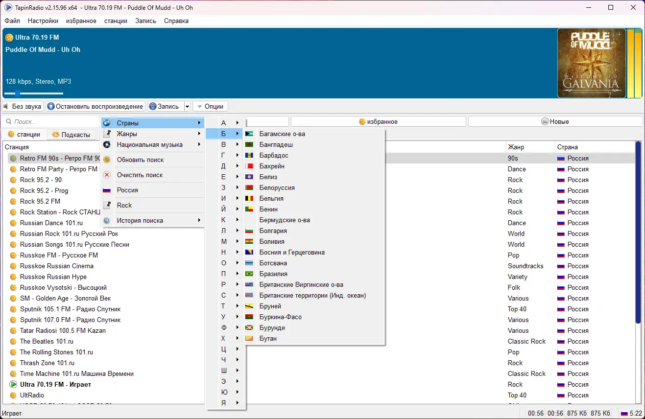 Для корректного поиска станций в жанрах Country и Information рекомендуется вводить запросы вручную в строку поиска, избегая выбора через выпадающие меню из-за особенностей локализации и онлайн-каталога.