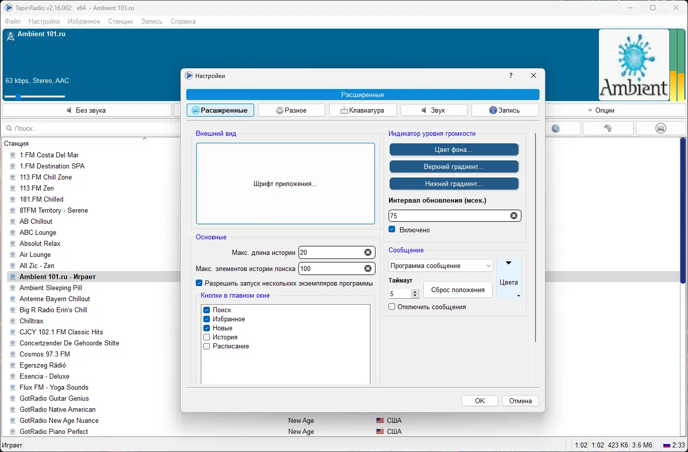 - Программа может сворачиваться в системный трей, что удобно при длительном прослушивании.