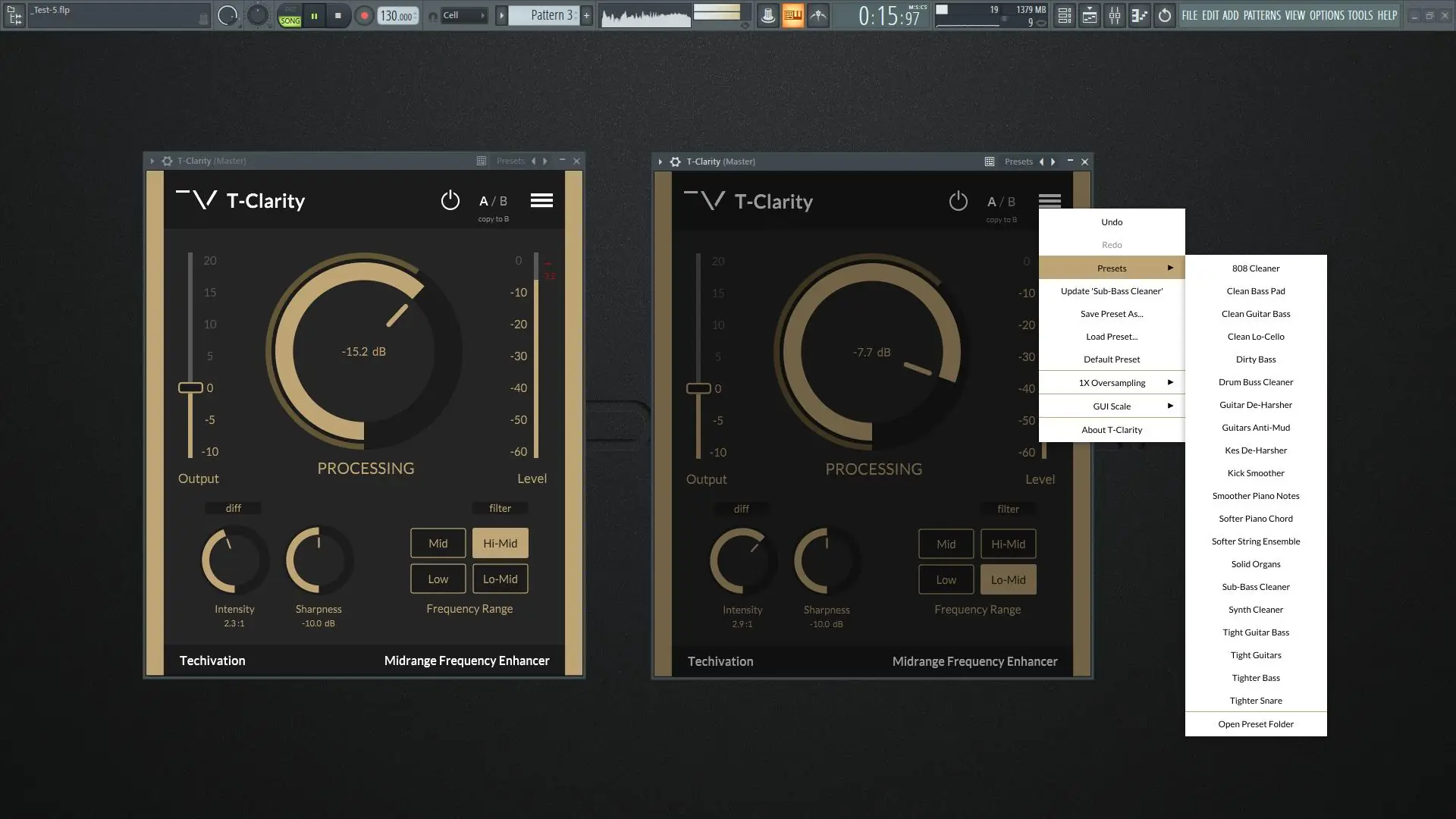 - T-Clarity повышает разборчивость средних частот, устраняя «ватность» и делая вокал и инструменты более четкими