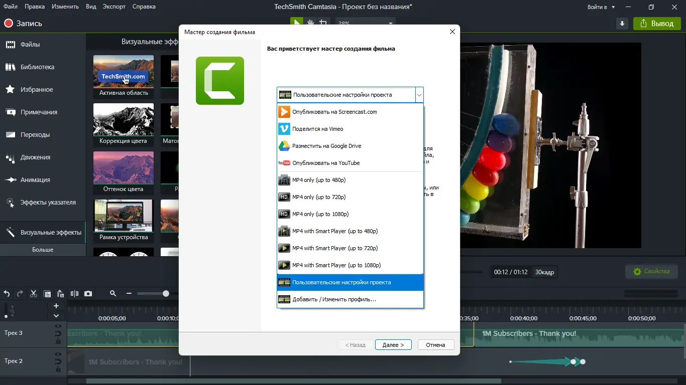 TechSmith Camtasia представляет собой комплексное решение для записи, редактирования и публикации видео с экрана компьютера. Она позволяет фиксировать действия в любой области рабочего стола, одновременно записывая системный звук, микрофон и веб-камеру. Полученное видео можно детально обрабатывать с помощью встроенных инструментов, добавляя аннотации, эффекты, переходы и аудиодорожки.