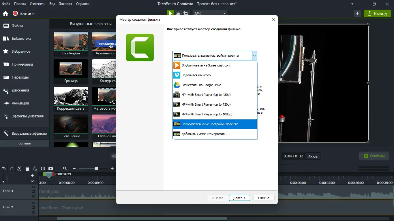 Camtasia обеспечивает высокую точность при создании обучающих материалов и демонстраций, сочетая простоту использования с расширенными возможностями монтажа.