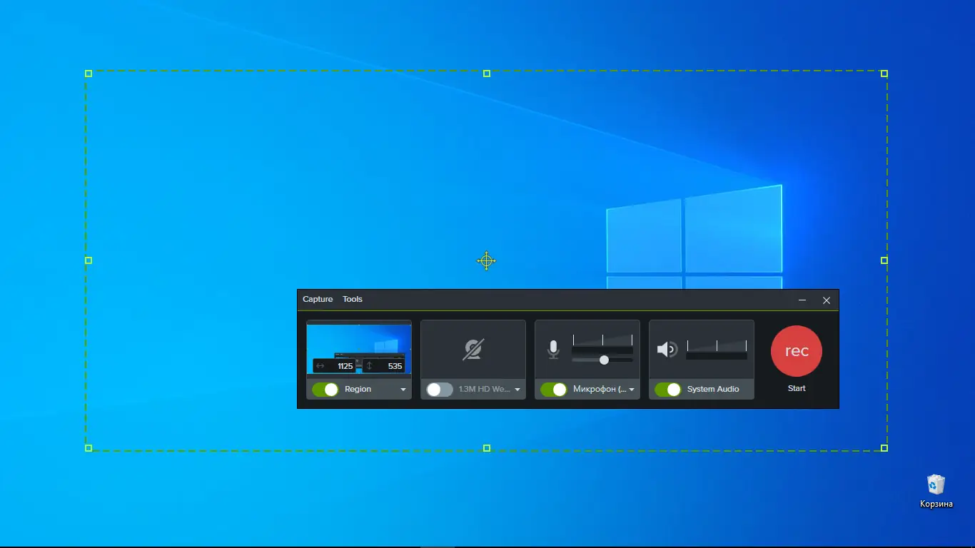 - Точная фиксация экрана с возможностью одновременной записи с веб-камеры и аудиоустройств.