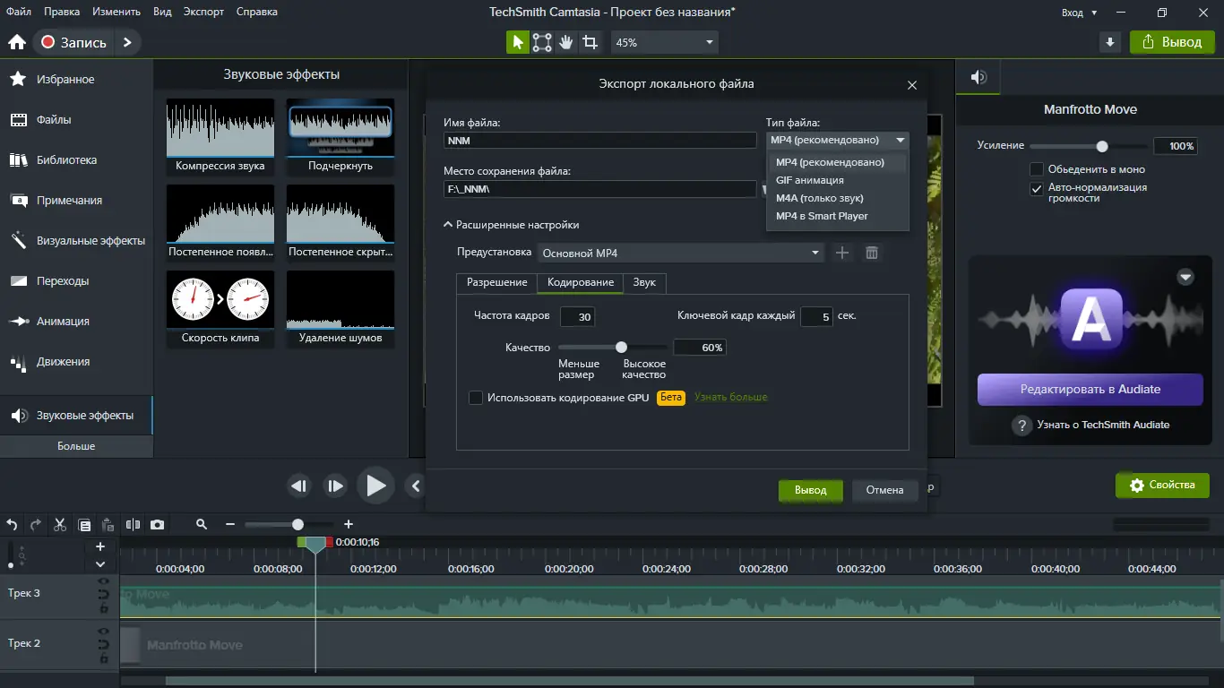 - Возможность добавления и редактирования звукового сопровождения, включая фоновую музыку и озвучку.