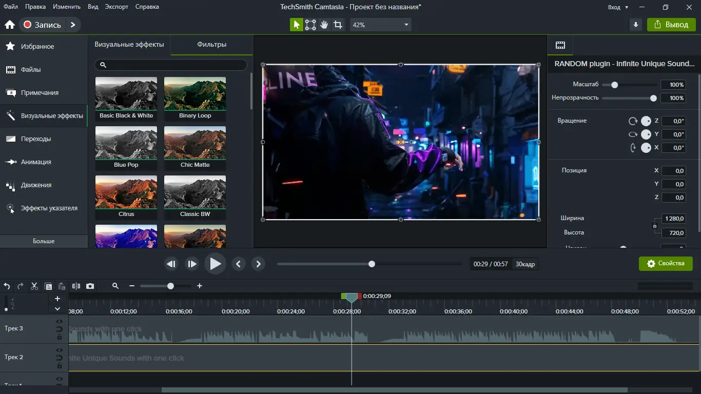 Использование TechSmith Camtasia начинается с выбора области записи — можно захватить весь экран или его часть, добавить веб-камеру в угол видео и настроить уровень громкости микрофона и системного звука. После записи фрагмент автоматически загружается в редактор, где его можно обрезать, объединить с другими клипами, добавить эффекты наложения, увеличения или затемнения. Аудиодорожки редактируются отдельно: можно убрать шумы, наложить фоновую музыку или синхронизировать озвучку с действиями на экране. Особенностью является функция автоматического создания субтитров по речи, что упрощает подготовку доступного контента. Проекты сохраняются в формате CAMV или экспортируются в универсальные видеофайлы, пригодные для публикации на сайтах, в соцсетях или корпоративных системах обучения.