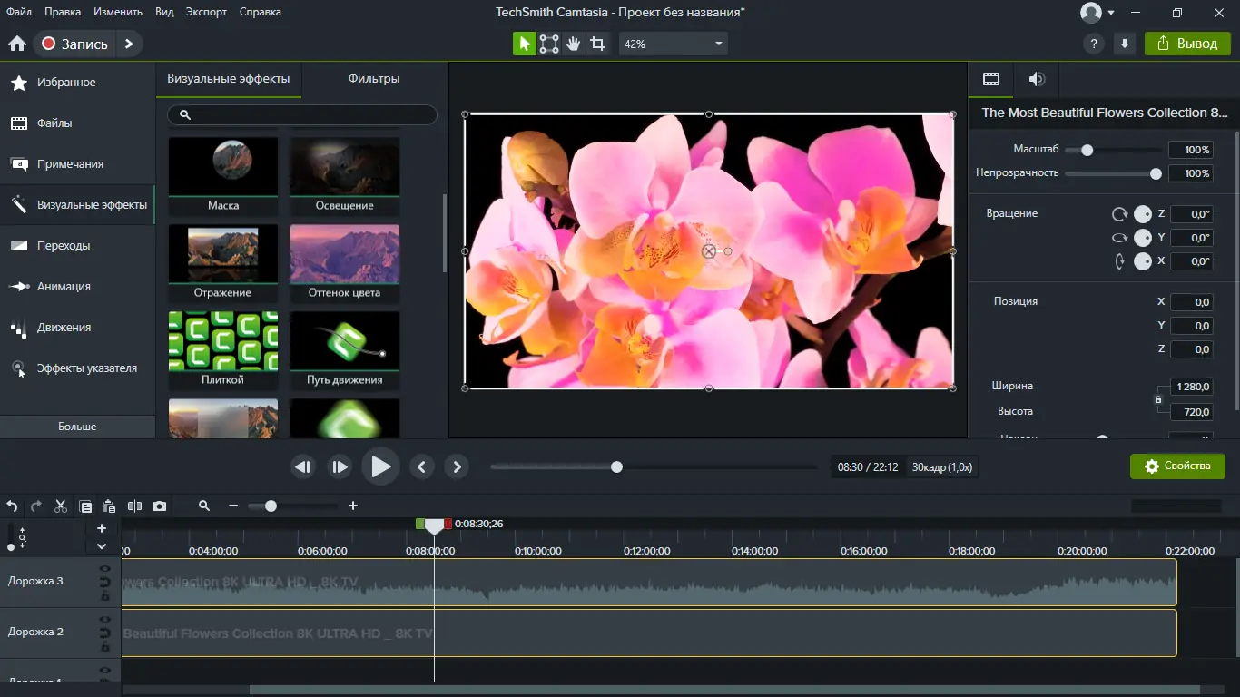Программа демонстрирует высокую эффективность при создании обучающих и презентационных материалов. Её интерфейс оптимизирован под быстрое освоение, а наличие встроенных шаблонов и эффектов сокращает время на монтаж. При этом Camtasia сохраняет достаточную гибкость для сложных проектов, позволяя работать с несколькими дорожками, настраивать анимации и управлять аудиоуровнями. Однако, несмотря на широкие возможности, утилита имеет определённые ограничения, особенно в сравнении с профессиональными видеоредакторами.