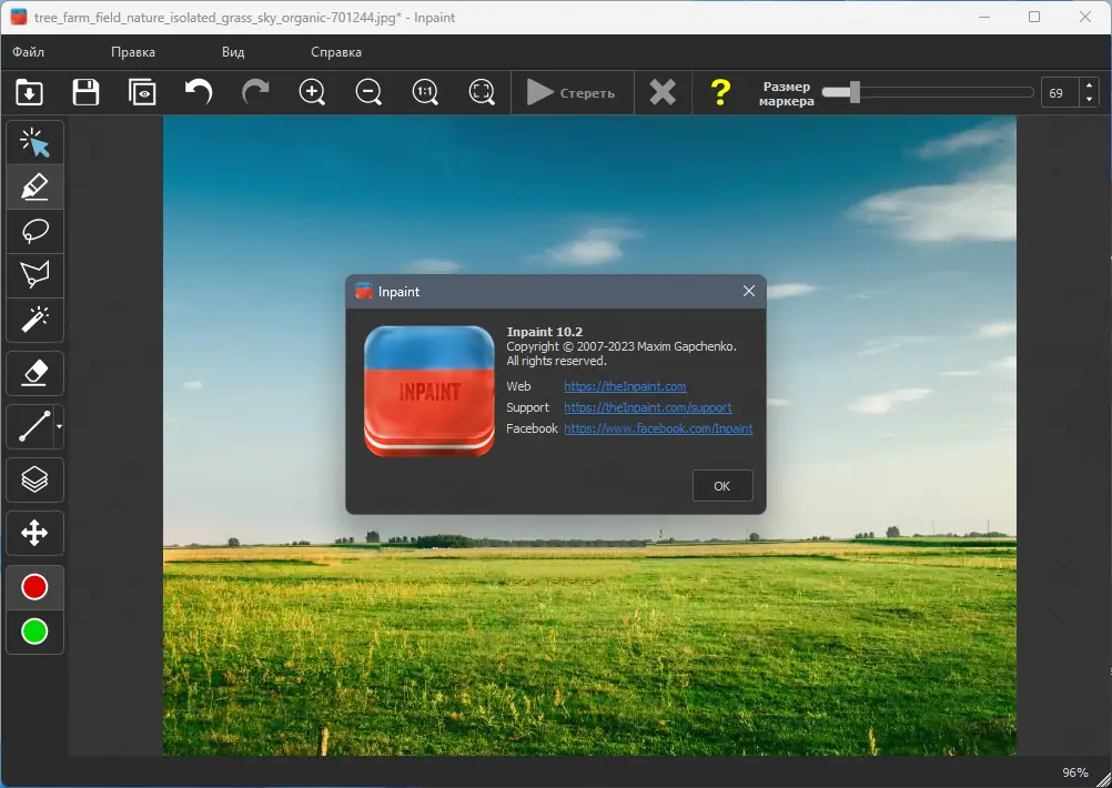 Teorex Inpaint — это специализированный инструмент для удаления нежелательных элементов с изображений с автоматическим восстановлением фона. Программа эффективно устраняет объекты, помехи, дефекты и артефакты, сохраняя естественность картинки после редактирования.