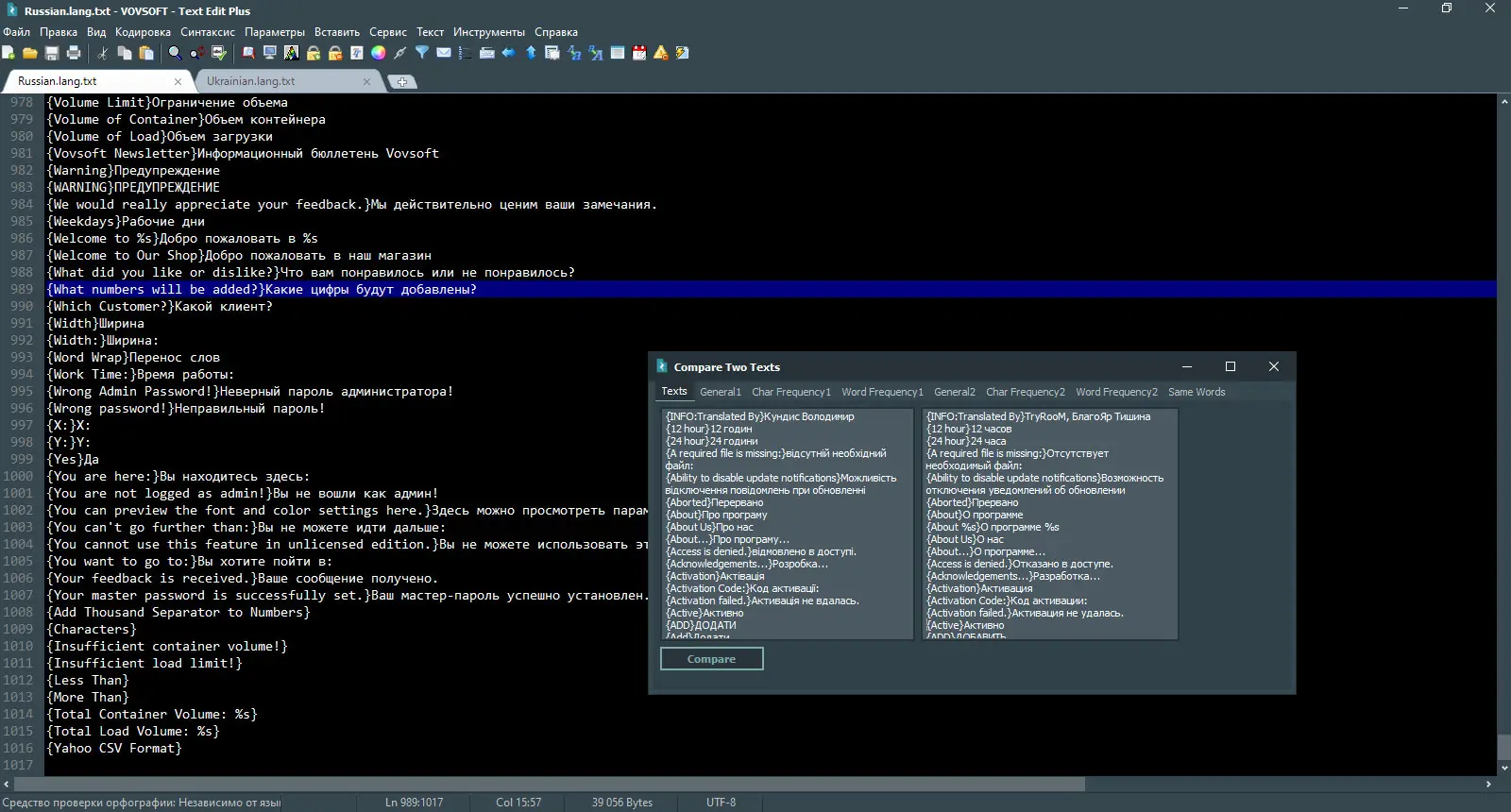 - Богатый набор функций для текстового анализа и редактирования.