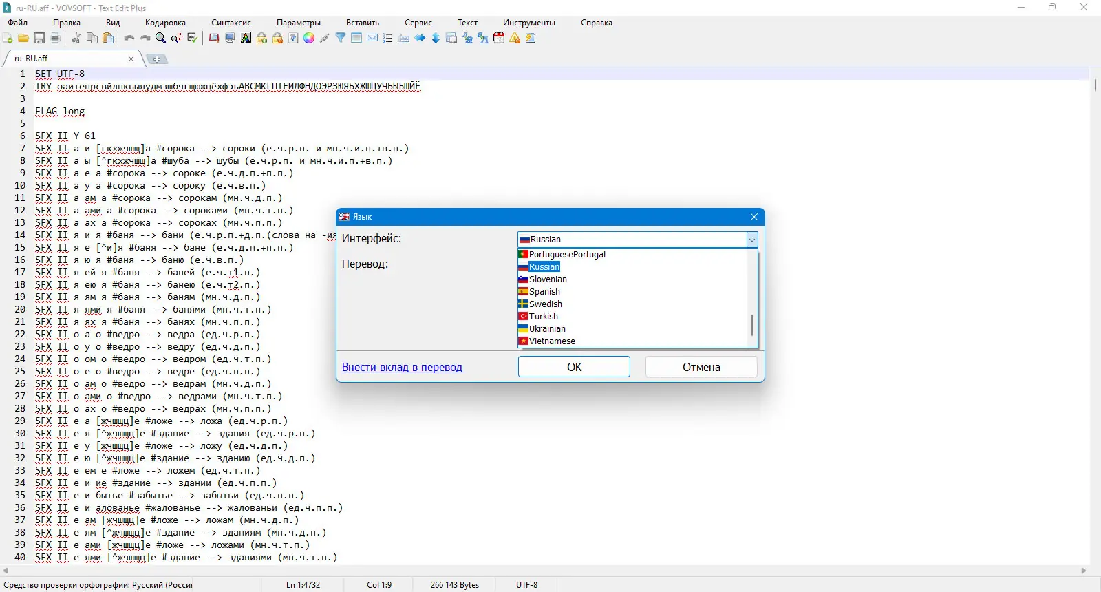 - Поддержка дополнительных словарей, включая русский и украинский