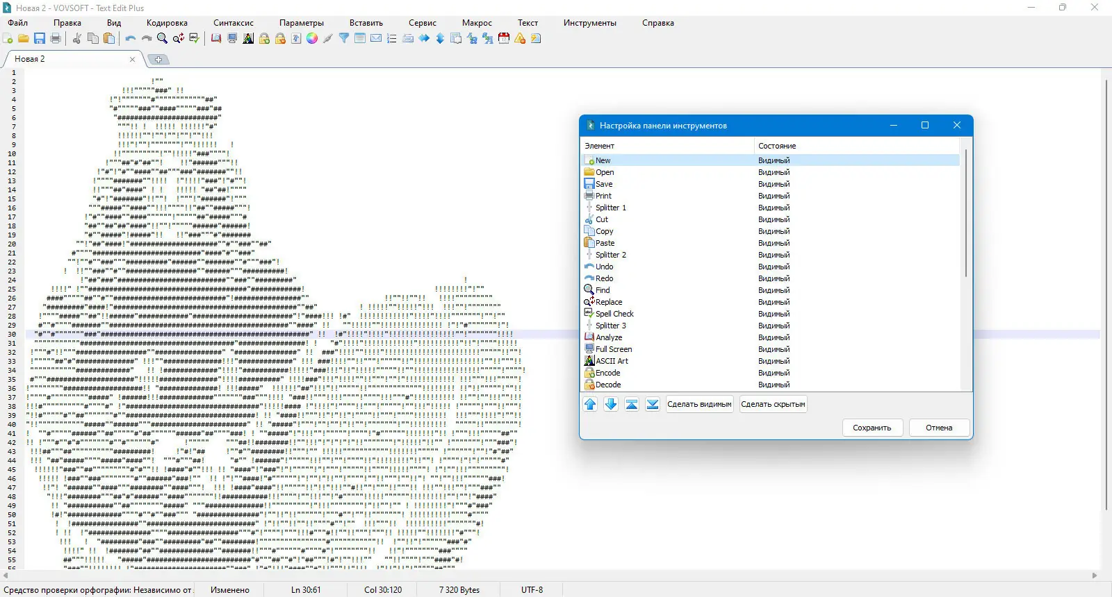 - Возможность импорта изображений как ASCII-арта — полезная функция для создания текстовых графических элементов.