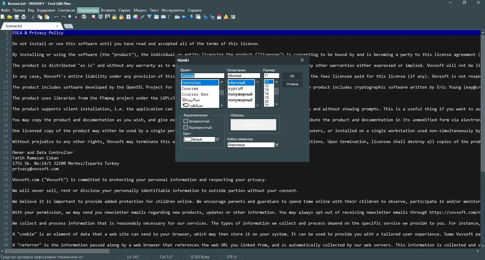 - Гибкие настройки шрифтов и цвета фона, включая тёмную тему для комфортной работы в затемнённом окружении.