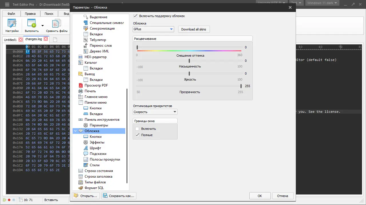 - Более ста готовых скинов, позволяющих персонализировать внешний вид редактора в соответствии с предпочтениями пользователя.