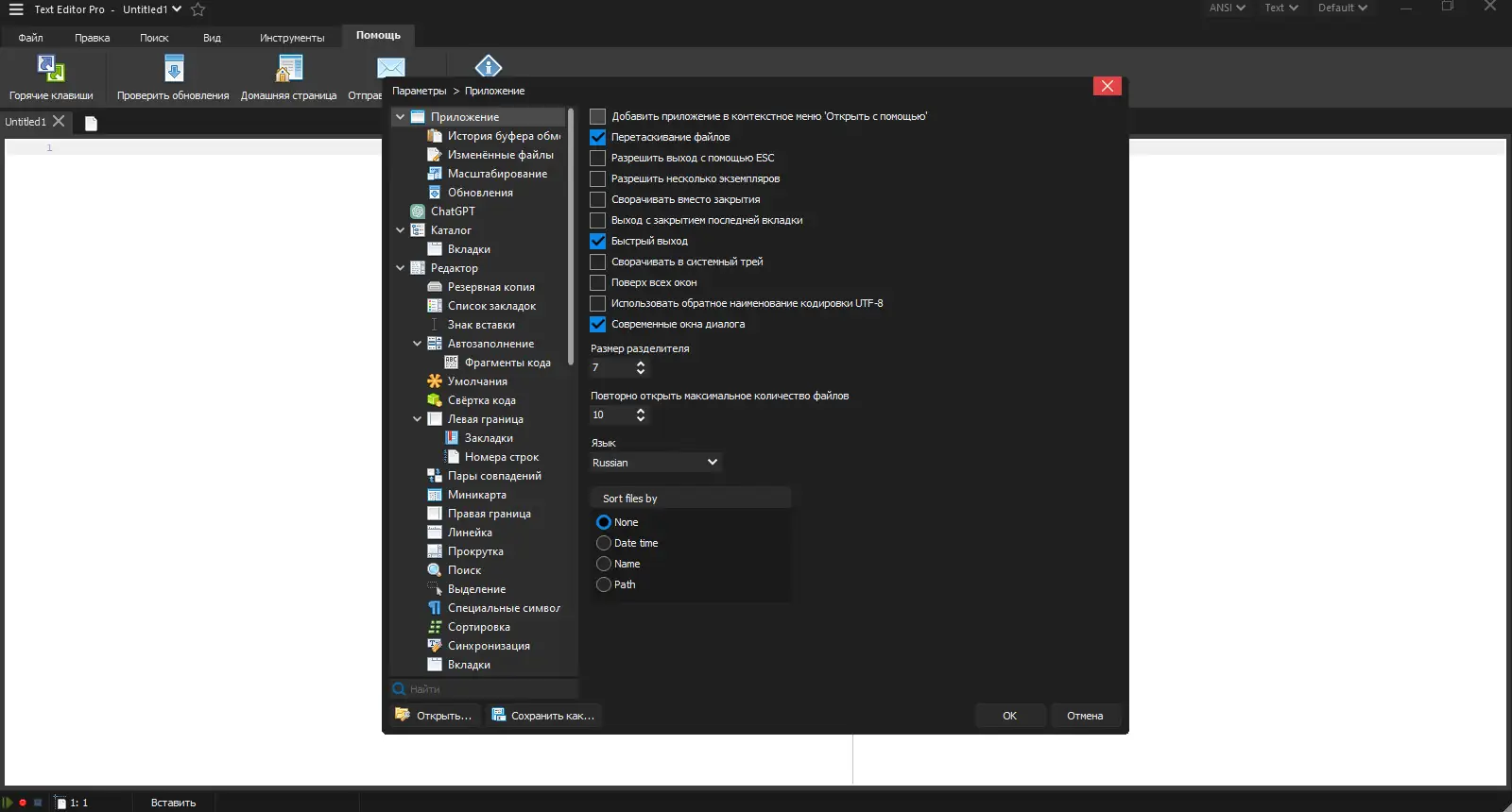 Работа с программой начинается с открытия файла или создания нового документа в одной из вкладок. Пользователь может настроить отображение синтаксиса вручную или позволить программе определить язык автоматически по расширению файла. Все изменения отображаются в реальном времени, а подсветка синтаксиса помогает выявлять ошибки на этапе написания кода. Через контекстное меню доступны инструменты преобразования текста, вставка специальных символов и форматирование блоков. Поддержка проектов позволяет организовать файлы по тематикам, а функция поиска по каталогам ускоряет навигацию в крупных кодовых базах. Дополнительные модули, такие как просмотр PDF и проверка орфографии, активируются путём добавления соответствующих компонентов в папку с исполняемым файлом.