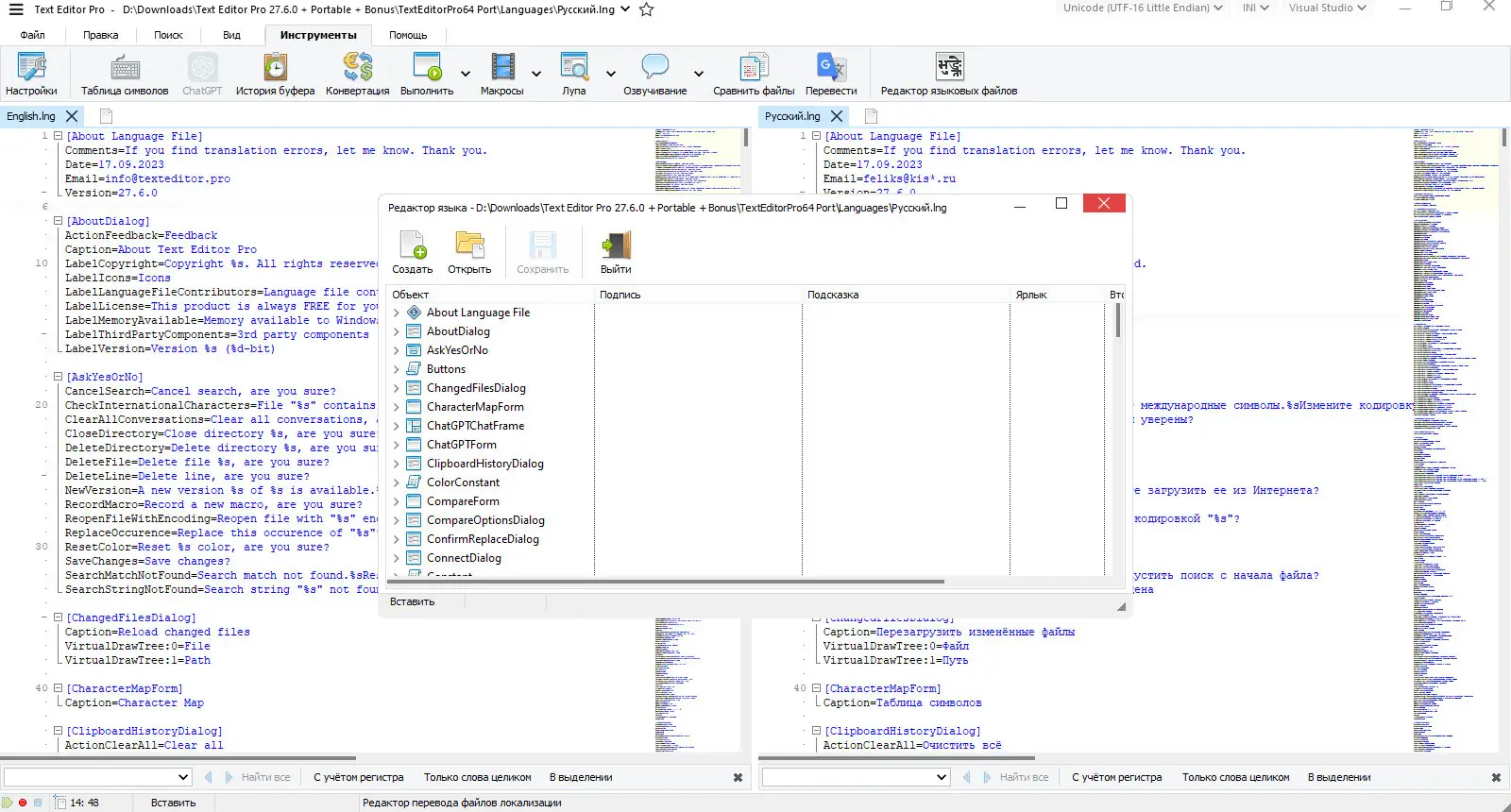 - Поддержка многовкладочного режима и одновременной работы с несколькими файлами