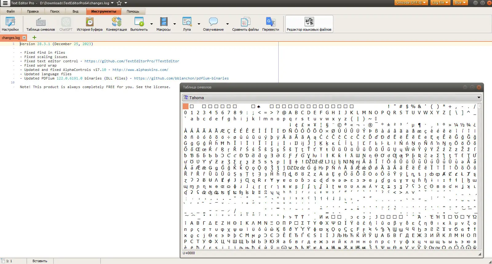 - Наличие встроенной таблицы Unicode и конвертера числовых форматов