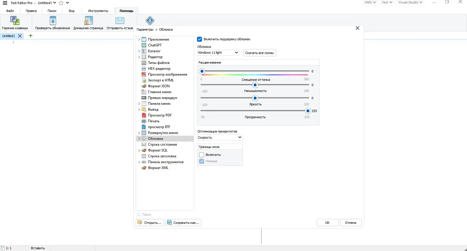 - Более ста настраиваемых параметров для персонализации интерфейса и поведения редактора.