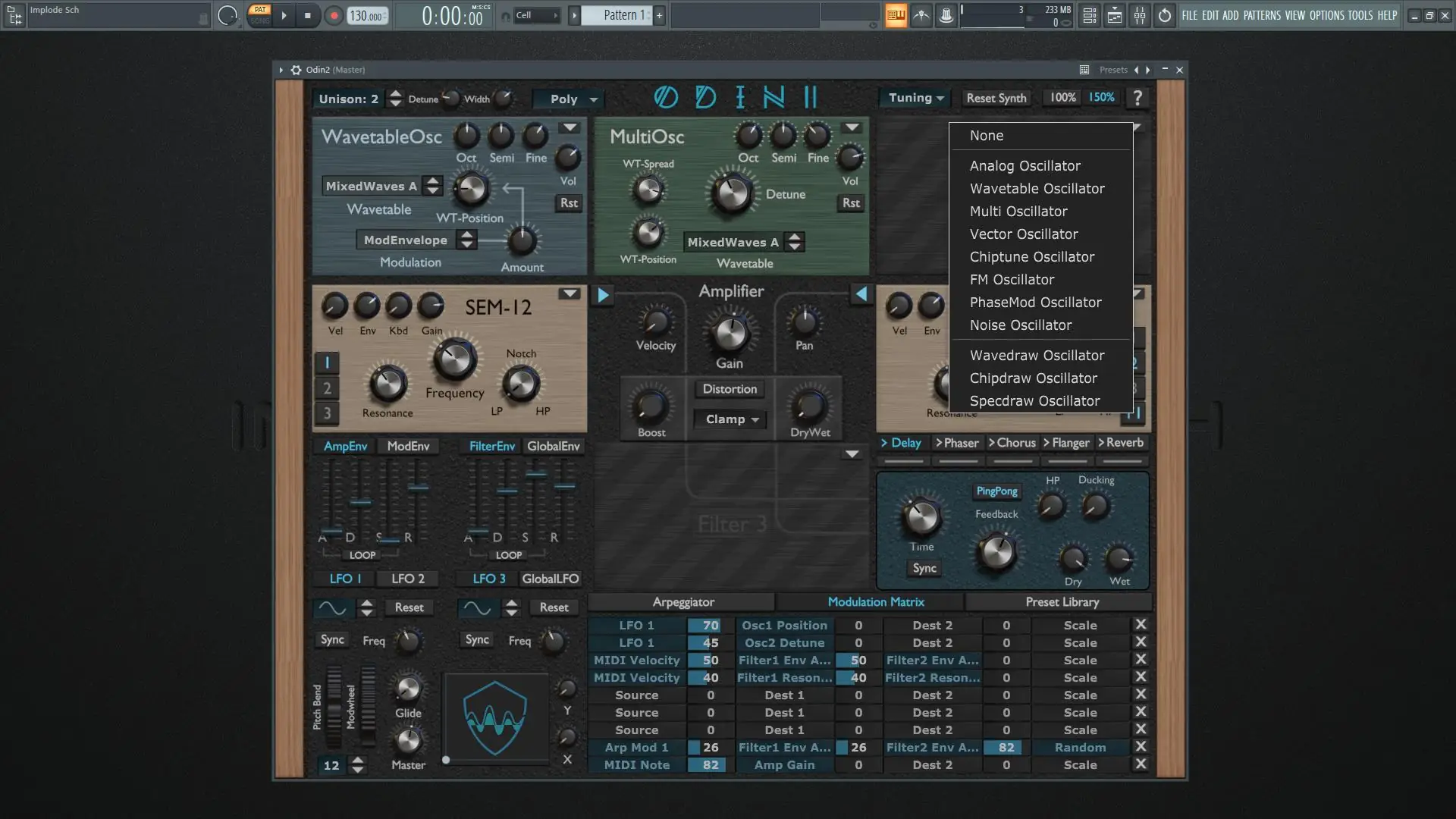 - Гибкая система модуляции с матрицей, четырьмя LFO и четырьмя огибающими ADSR