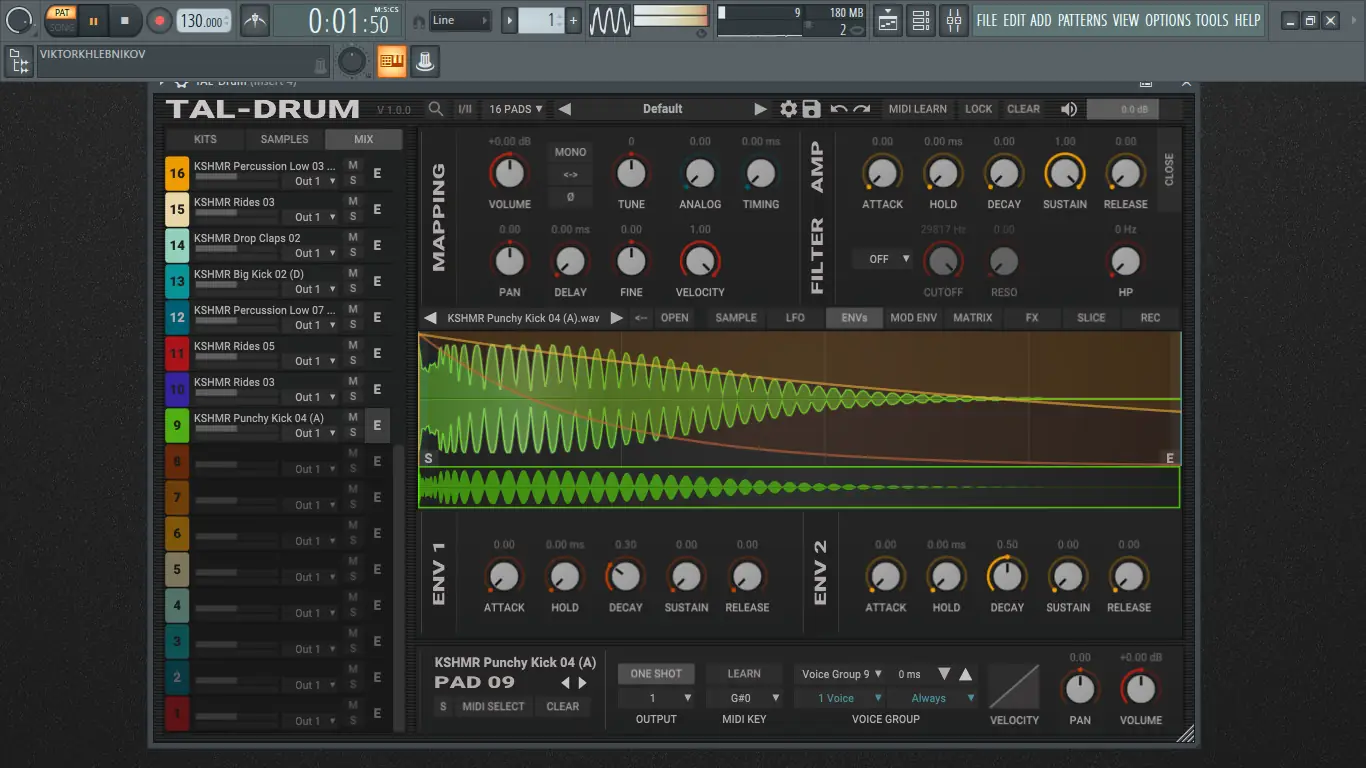 - Глубокая настройка каждого пэда с модуляцией, LFO и несколькими огибающими.