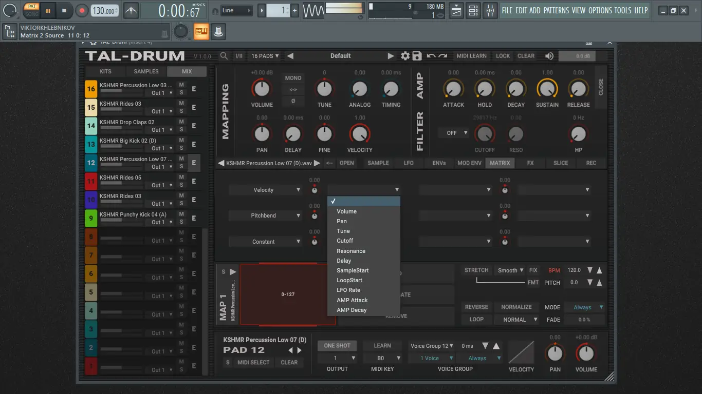 Работа с TAL-Drum начинается с загрузки аудиофайлов на пэды, которые можно перетаскивать мышью или импортировать через менеджер. Каждый сэмпл можно настроить с помощью огибающих AHDSR, модуляции, LFO и сплайновой кривой для плавного изменения параметров. Редактор слайсов позволяет разбивать лупы на части и переназначать их по пэдам, создавая уникальные ритмические структуры. Встроенный рекордер даёт возможность записывать новые сэмплы прямо в плагин, что ускоряет креативный процесс. Поддержка форматов WAV, AIF, FLAC, OGG и MP3 делает совместимость с другими проектами максимально широкой. Пользователь может экспериментировать с режимами time-stretching — от чистого Crisp до тёплого Vintage AK4I Cycle, подчёркивающего аналоговую природу звука.