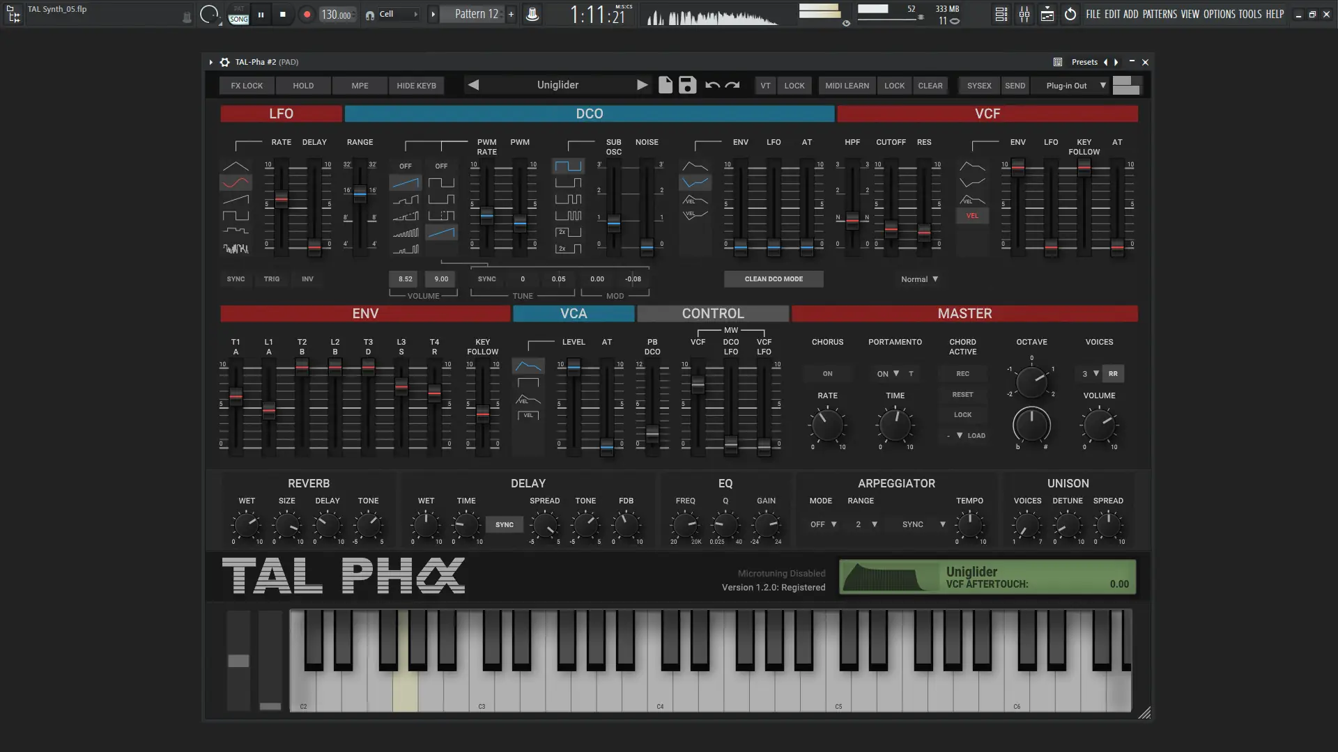 Индивидуальная настройка каждого голоса позволяет преобразовать DCO в функциональный аналог VCO, добавляя дрейф и нестабильность, характерные для аналоговых синтезаторов.