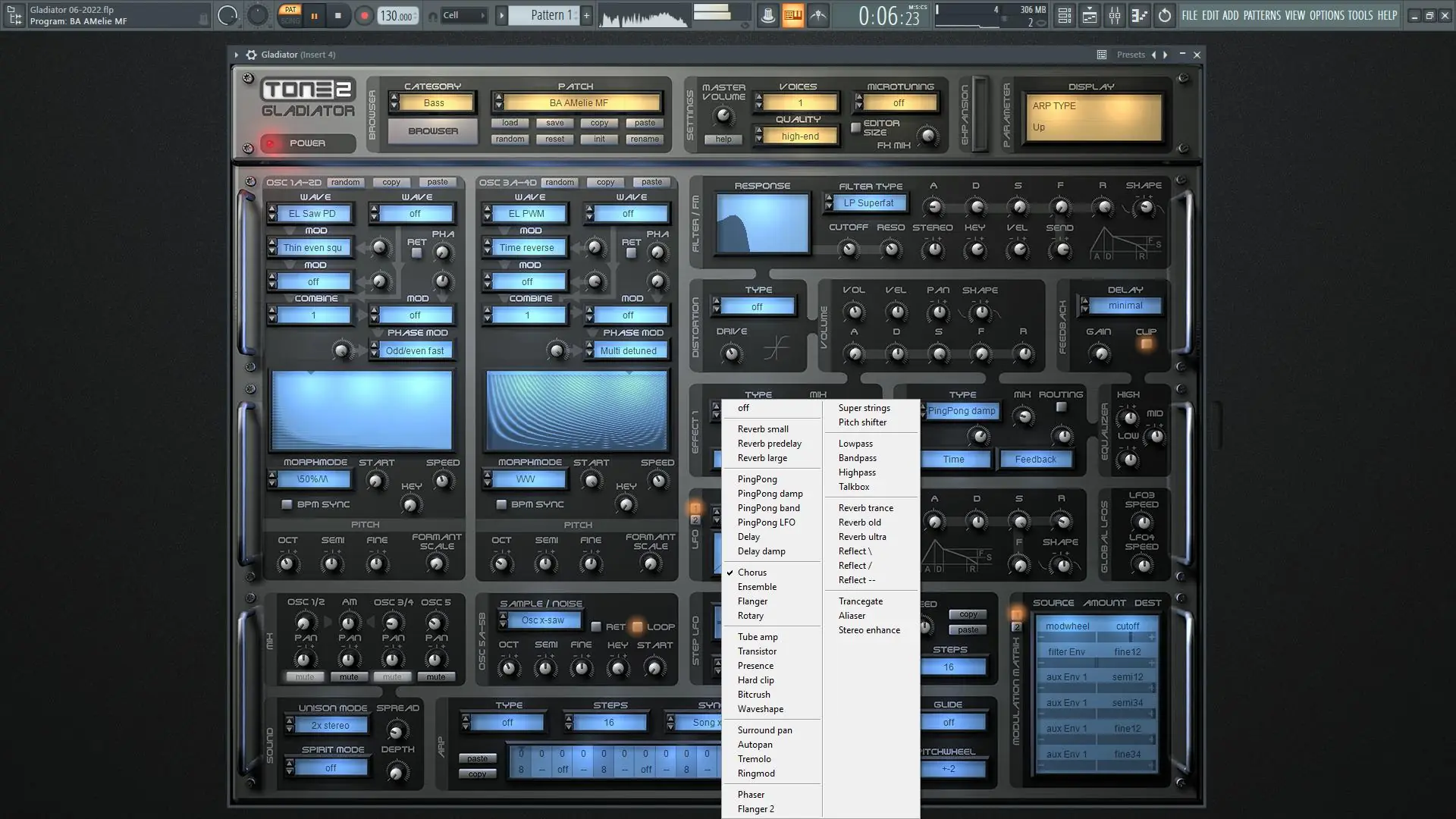 Tone2 — Gladiator представляет собой мощный программный синтезатор, разработанный для создания уникальных и глубоких звуковых текстур. Он использует запатентованную технологию HCM, сочетающую элементы фазовой модуляции, гармонического синтеза и динамической обработки сигнала. Благодаря этому достигается плотное, объёмное звучание, которое отлично вписывается как в электронную, так и в кинематографическую музыку. Программа отличается высокой стабильностью и минимальным потреблением ресурсов процессора. Она поддерживает различные режимы синтеза, включая HCM, FM и AM, позволяя гибко экспериментировать с формой волны и тембром.