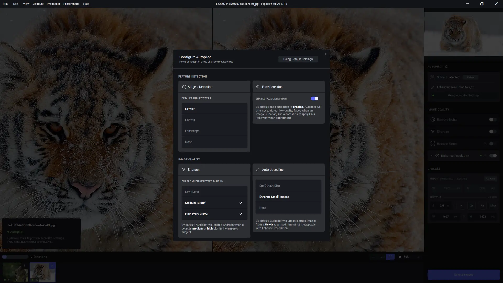 Использование программы начинается с импорта изображения в интерфейс. После загрузки искусственный интеллект автоматически анализирует файл, выявляя наличие шума, размытости или недостатка разрешения. Функция Autopilot предлагает оптимальные настройки коррекции, которые можно применить немедленно или отредактировать вручную. Пользователь может регулировать интенсивность каждого эффекта, просматривая изменения в режиме реального времени. Поддерживаются как отдельные файлы, так и пакетная обработка, что особенно полезно при работе с большим количеством снимков. Программа интегрируется с популярными редакторами, такими как Adobe Photoshop и Lightroom, позволяя использовать её как плагин.