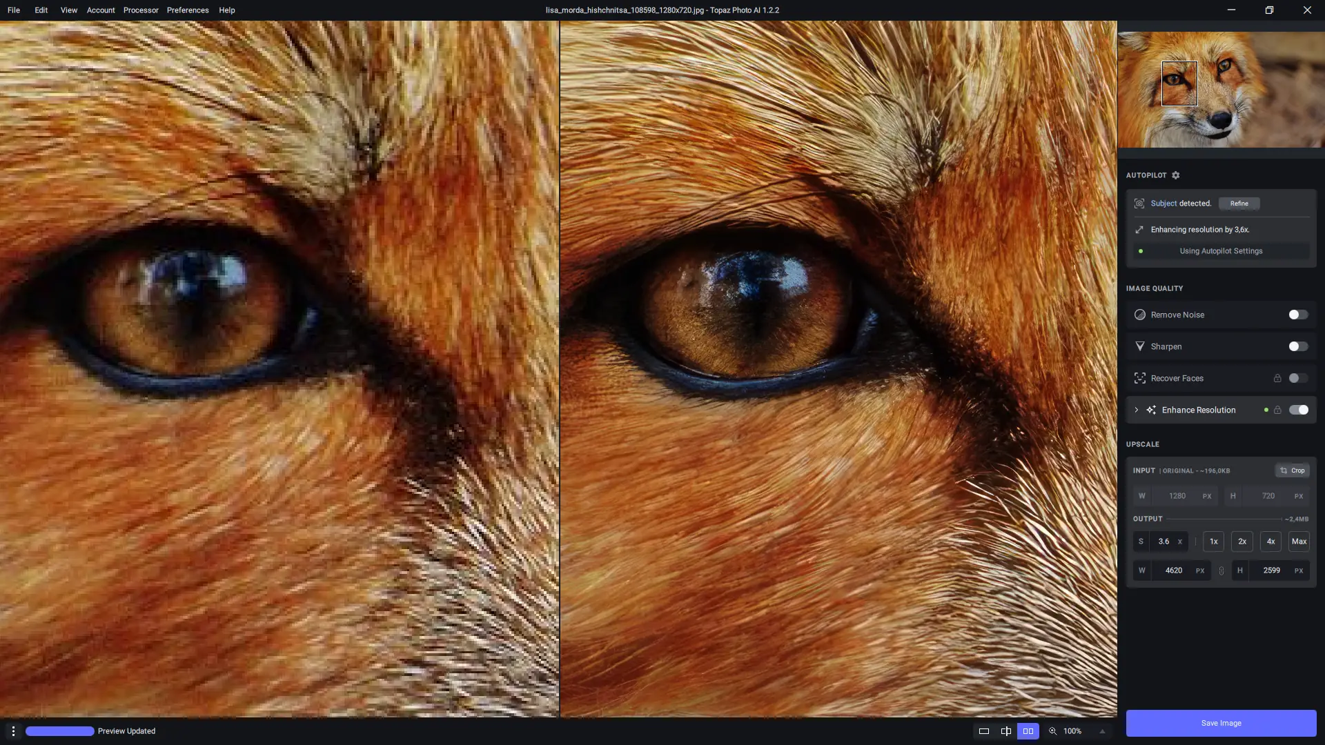 Topaz Photo AI — программное обеспечение для автоматической обработки фотографий с использованием технологий искусственного интеллекта. Инструмент эффективно устраняет шумы, повышает чёткость изображений и увеличивает их разрешение без потери качества. Это решение объединяет лучшие алгоритмы из нескольких специализированных приложений в одном интерфейсе.