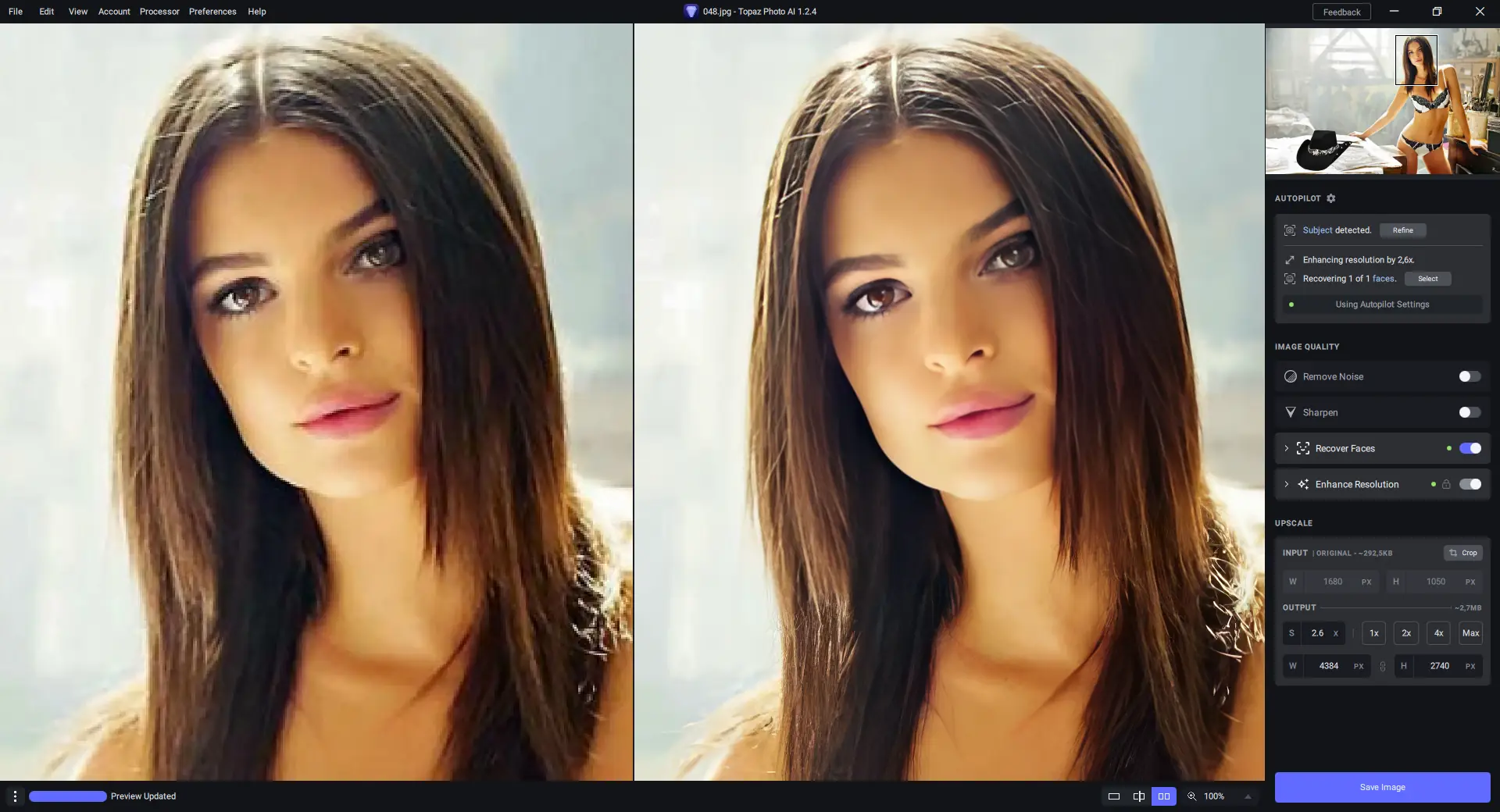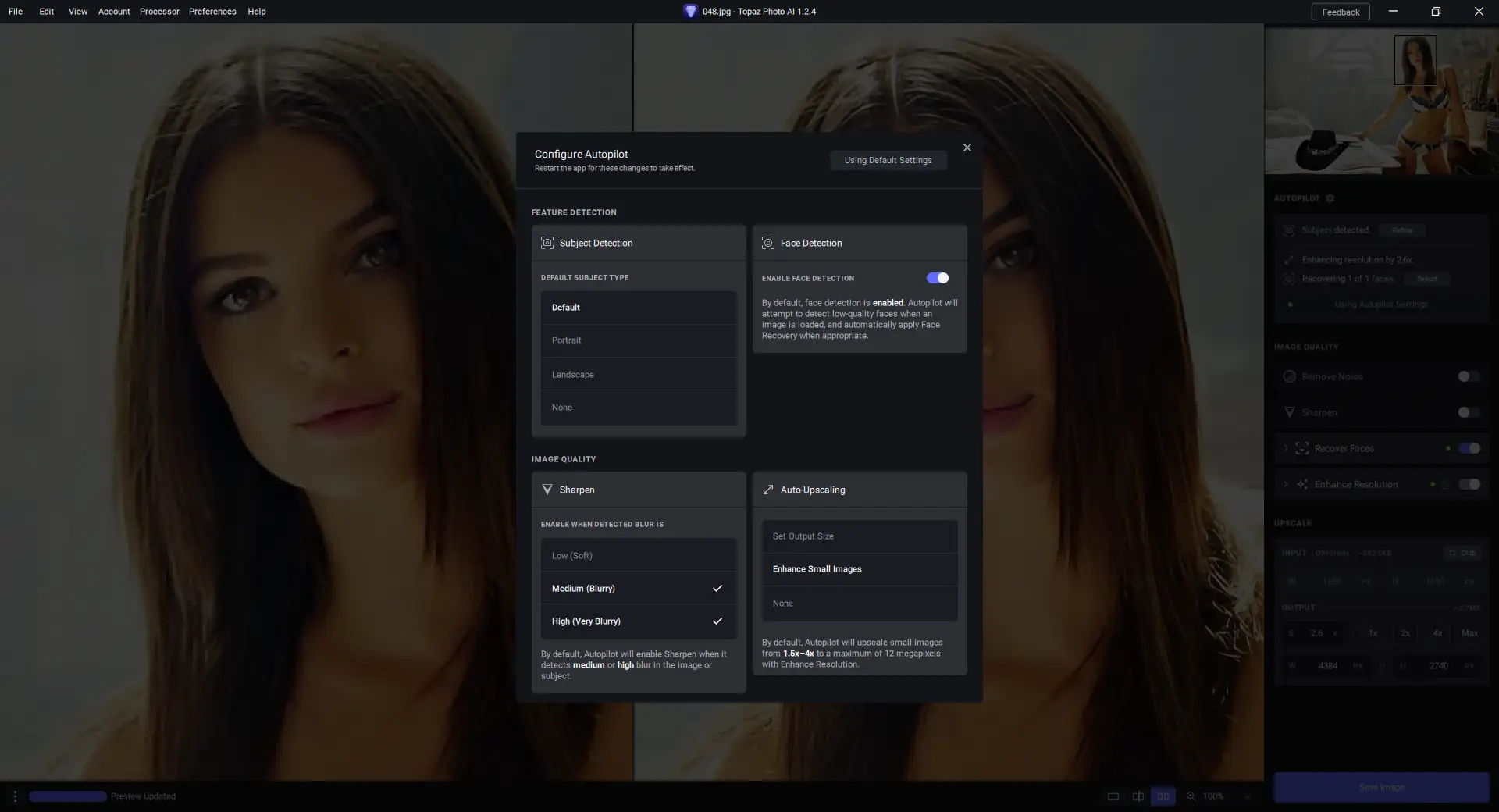 Интерфейс Topaz Photo AI интуитивно понятен и не требует глубоких знаний в области графики. После загрузки изображения программа запускает анализ, в ходе которого выявляются такие проблемы, как шум, размытость или недостаток разрешения. Пользователь может выбрать автоматический режим, в котором все исправления применяются на основе рекомендаций системы, или переключиться в ручной режим для точной настройки интенсивности каждого эффекта. Работа с пакетами изображений осуществляется через встроенный батч-режим, позволяя обрабатывать десятки файлов одновременно.