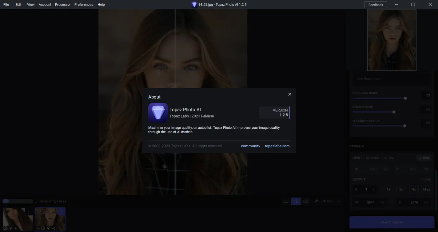 Topaz Photo AI представляет собой инновационное решение для обработки цифровых изображений, разработанное на основе глубокого обучения. Программа интегрирует функции, ранее доступные в отдельных продуктах Topaz Labs, таких как Denoise AI, Sharpen AI и Gigapixel AI, позволяя эффективно решать ключевые задачи по улучшению фото в одном приложении. Благодаря использованию нейронных сетей, она способна анализировать содержимое изображения и применять оптимальные корректировки с учётом контекста.