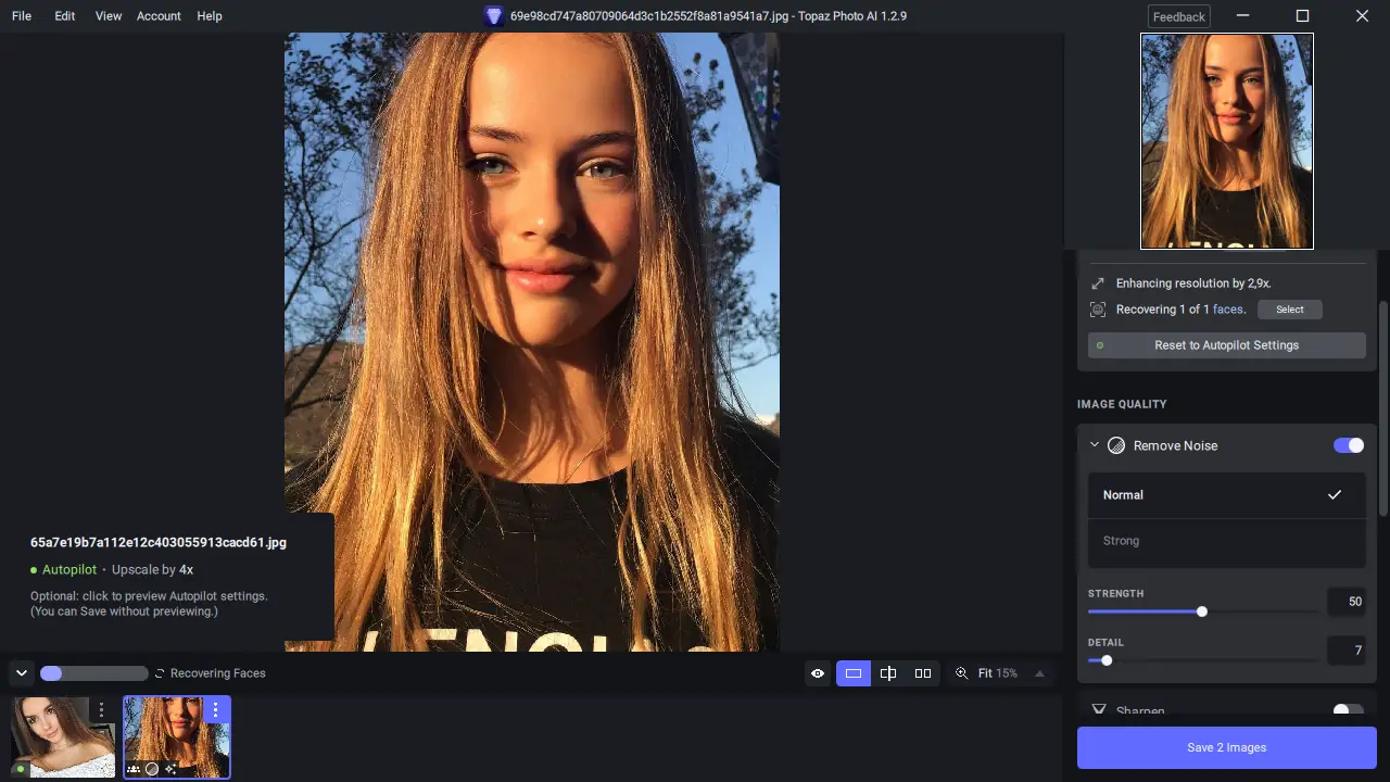 Использование программы начинается с загрузки изображения в интерфейс приложения. После этого система автоматически анализирует файл, выявляя наличие шума, размытости или недостаточного разрешения. В режиме Autopilot программа предложит оптимальные параметры коррекции, которые можно применить одним кликом. При необходимости пользователь может переключиться в ручной режим и настроить каждый параметр отдельно — например, степень шумоподавления, интенсивность повышения резкости или масштаб увеличения. Интерфейс интуитивно понятен, а предварительный просмотр в реальном времени позволяет сразу оценить эффект от внесённых изменений. Обработка выполняется быстро, особенно на системах с поддержкой GPU, а результат сохраняется в популярных графических форматах без потери качества.