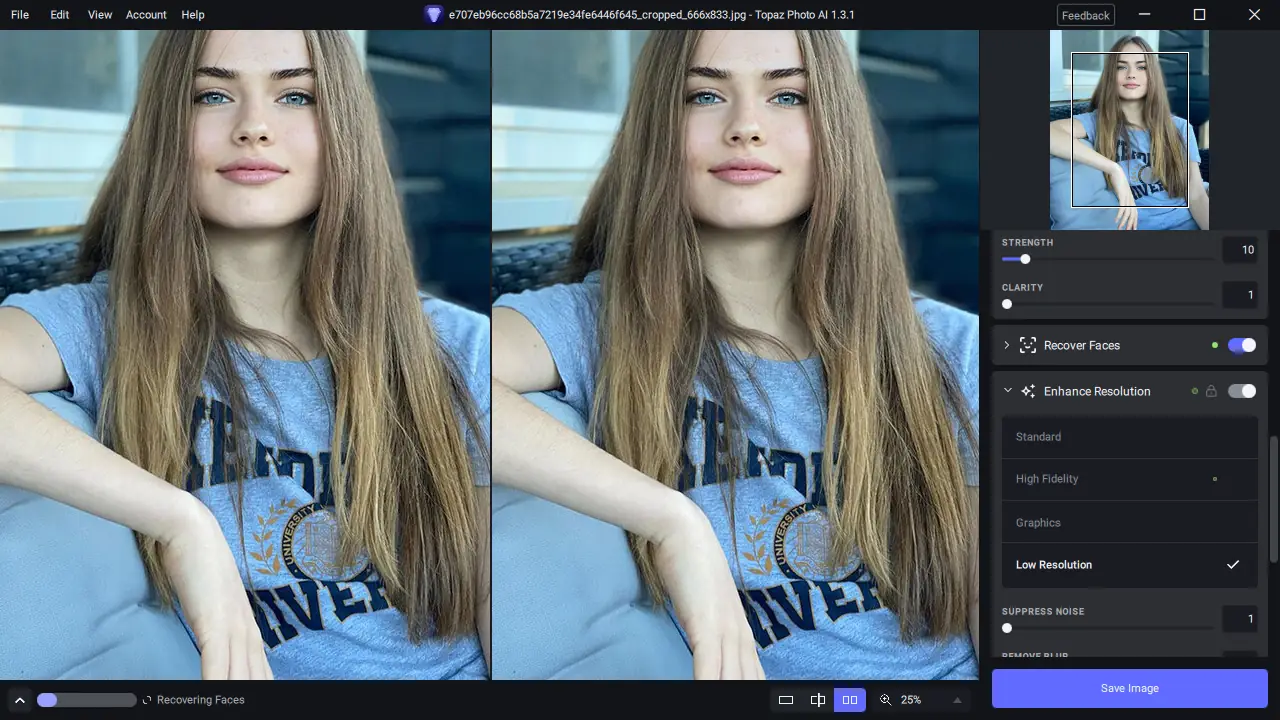 Искусственный интеллект в Topaz Photo AI не просто применяет фильтры — он понимает содержание изображения, распознаёт лица, текстуры и объекты, что позволяет добиваться максимально естественных результатов.