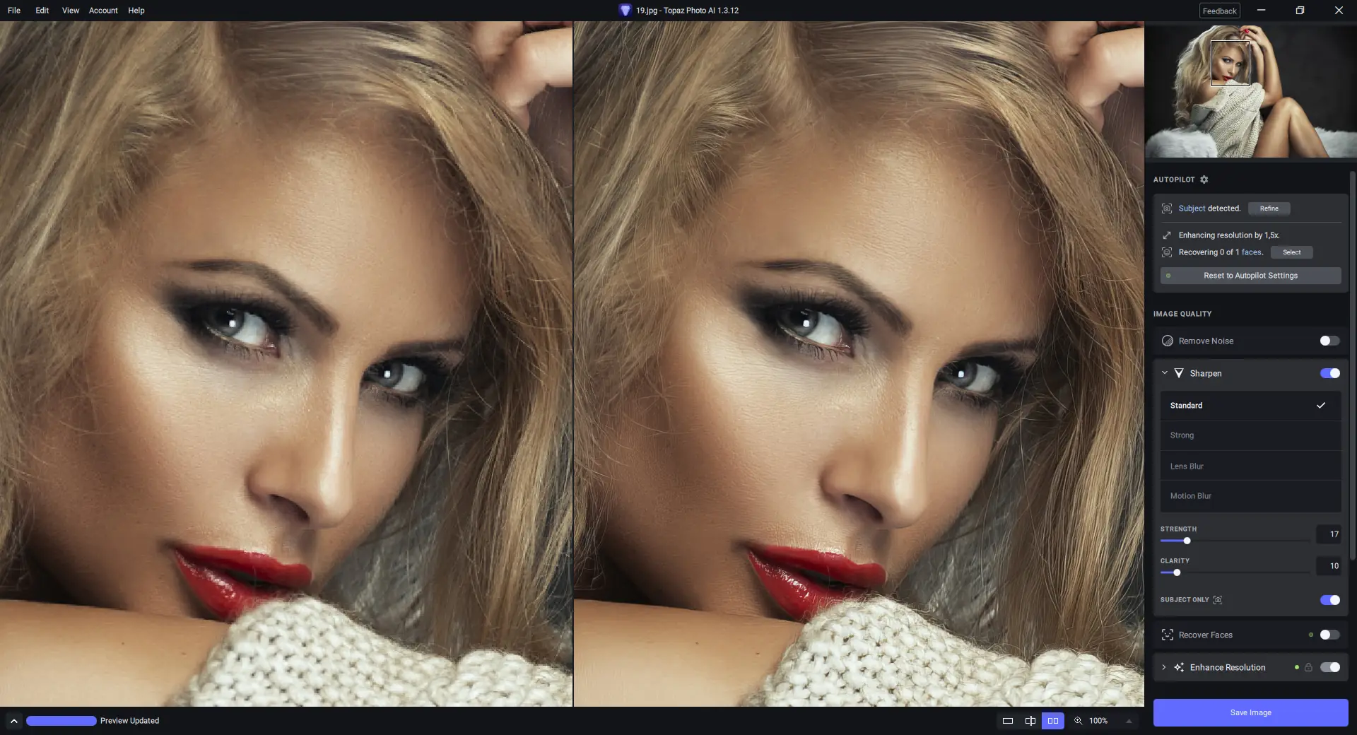 Использование программы начинается с загрузки изображения в интерфейс приложения. После анализа система предлагает автоматические улучшения или позволяет пользователю вручную настроить уровень шумоподавления, резкости и масштабирования. Режим Autopilot особенно эффективен при работе с большими пакетами снимков, поскольку он быстро определяет тип проблемы и применяет соответствующие алгоритмы. Пользователь может предварительно просматривать изменения в реальном времени, сравнивая оригинальное и обработанное изображение по принципу «до и после». Программа также поддерживает интеграцию с Adobe Photoshop в виде плагина, что расширяет возможности редактирования внутри профессионального графического пакета.