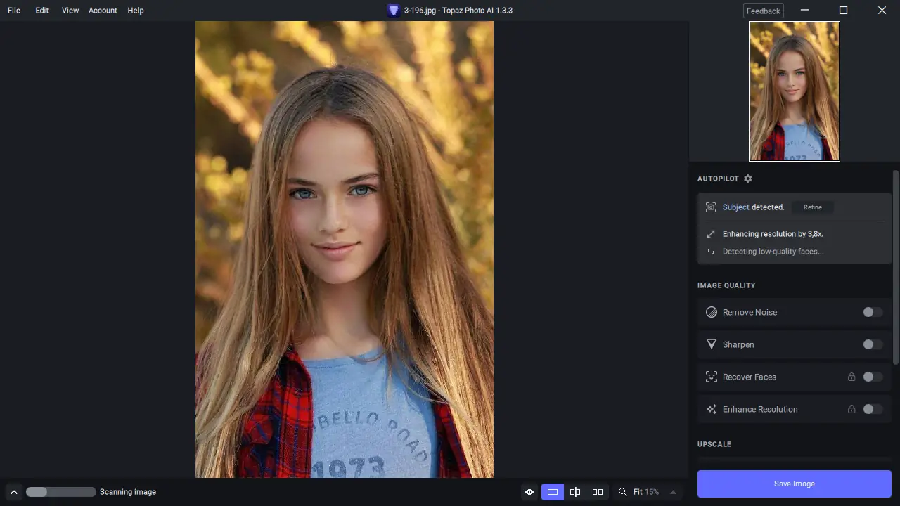 Использование программы начинается с загрузки изображения в интерфейс приложения, после чего активируется анализ через Autopilot. Пользователь может наблюдать за процессом в режиме реального времени, получая предварительные результаты ещё до завершения обработки. При необходимости доступны ручные регулировки уровня шумоподавления, резкости и масштабирования, что позволяет тонко настраивать конечный результат под конкретные задачи.