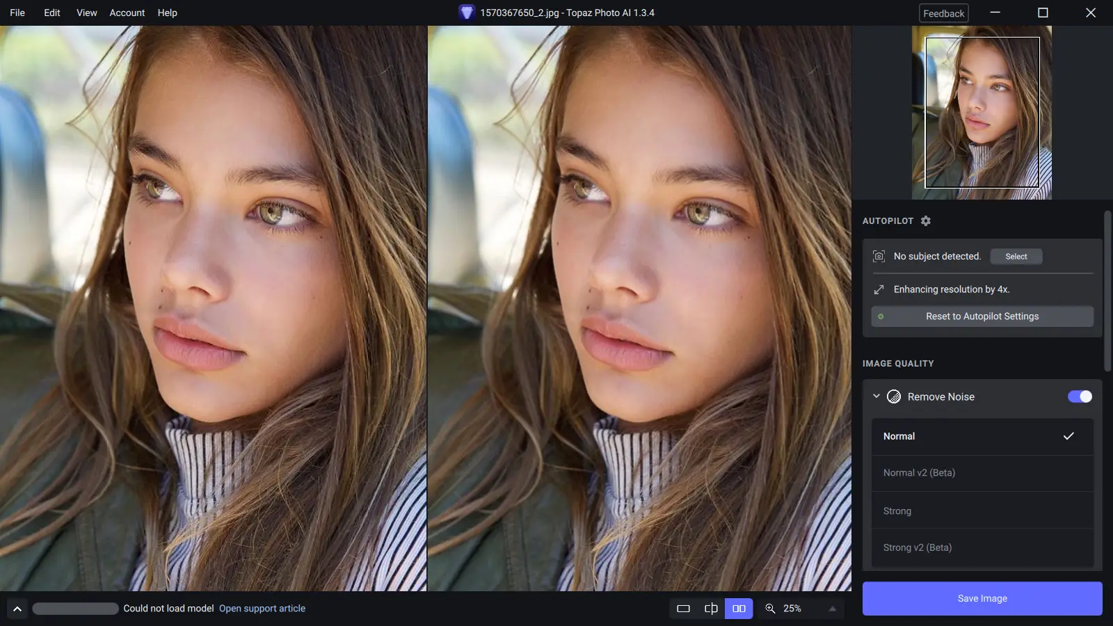 Пользоваться Topaz Photo AI просто: после загрузки изображения программа автоматически начинает анализ, выявляя области с шумом, недостаточной резкостью или низким разрешением. Пользователь может выбрать режим автоправки или вручную настроить параметры, такие как сила шумоподавления, степень увеличения и интенсивность повышения чёткости. Интерфейс интуитивно понятен, а предварительный просмотр в реальном времени позволяет видеть изменения до применения эффектов. После завершения обработки файл сохраняется в выбранном формате с сохранением исходного качества.