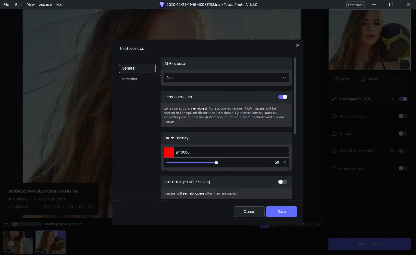 Интерфейс приложения интуитивно понятен и ориентирован на быстрый рабочий процесс. После загрузки изображения функция Autopilot проводит анализ и предлагает оптимальные параметры коррекции. Пользователь может принять рекомендации или вручную регулировать уровни шумоподавления, резкости и масштабирования. В новой версии реализована возможность задавать разрешение в пикселях на дюйм или сантиметр, что удобно при подготовке изображений к печати. Настройки сохраняются между сессиями, а обновлённая панель инструментов упрощает доступ к ключевым функциям.