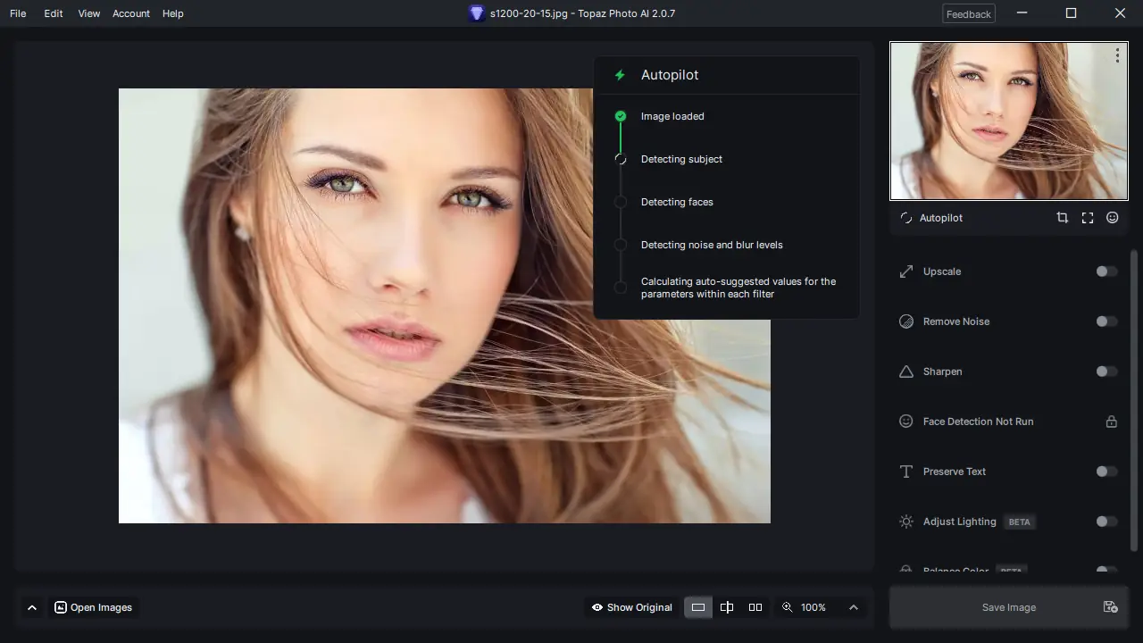 Использование программы начинается с загрузки изображения через интерфейс или перетаскивания файла в рабочую область. Система автоматически запускает анализ с помощью встроенного движка Autopilot, выявляя наличие шума, размытости или необходимости увеличения. Пользователь может принять предложенные настройки или вручную отрегулировать интенсивность каждого эффекта, используя слайдеры и превью в реальном времени.